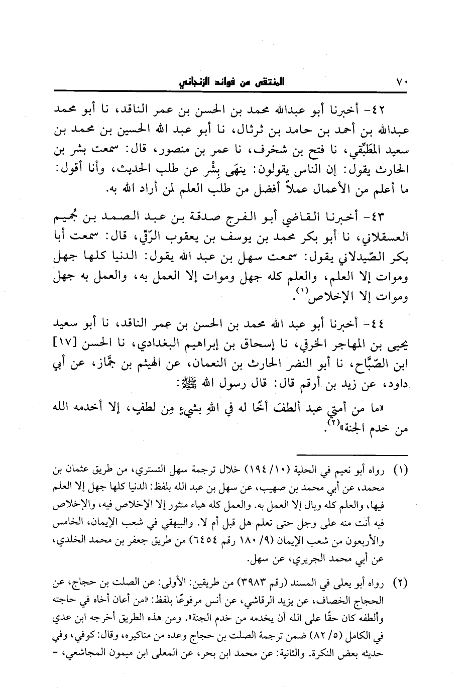 44 - أخبرنا أبو عبد الله محمد بن الحسن بن عمر الناقد، نا أبو سعيد يحيى بن المهاجر الخرقي، نا إسحاق بن إبراهيم البغدادي، نا الحسن ابن الصباح، نا أبو النضر الحارث بن النعمان، عن الهيثم بن جماز، عن أبي داود، عن زيد بن أرقم قال: قال رسول الله صلى الله عليه وسلم: