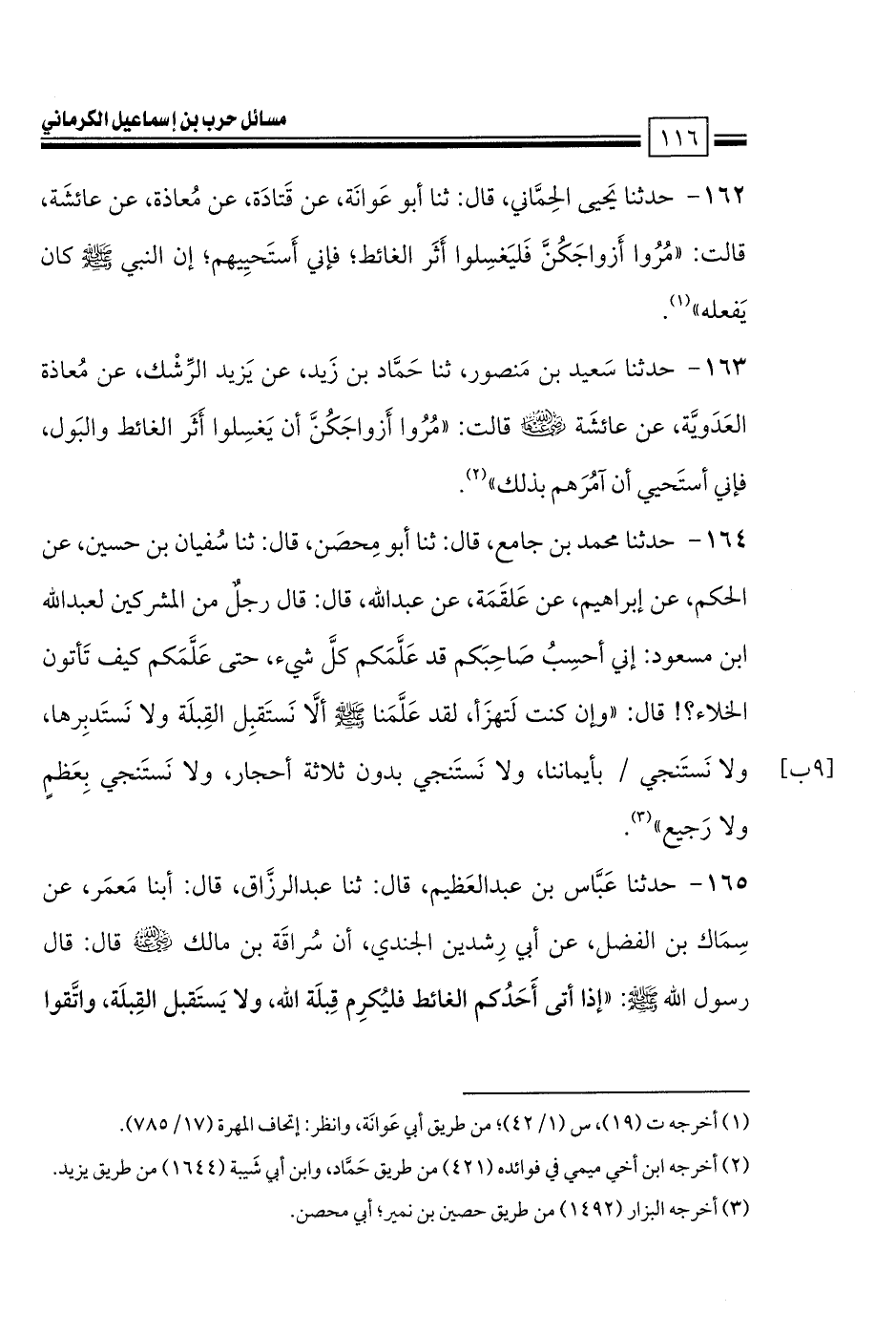 كتاب مسائل حرب الكرماني كتاب الطهارة والصلاة - ت السريع