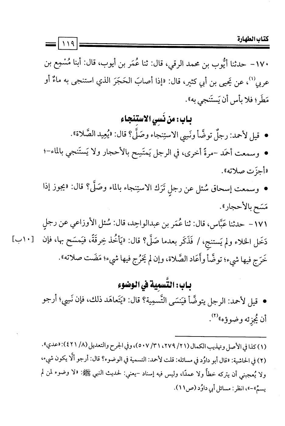 كتاب مسائل حرب الكرماني كتاب الطهارة والصلاة - ت السريع