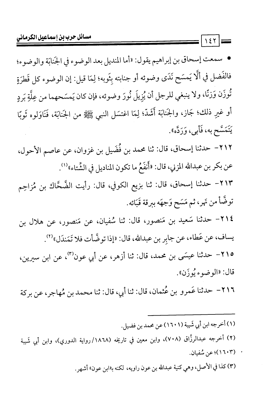 كتاب مسائل حرب الكرماني كتاب الطهارة والصلاة - ت السريع