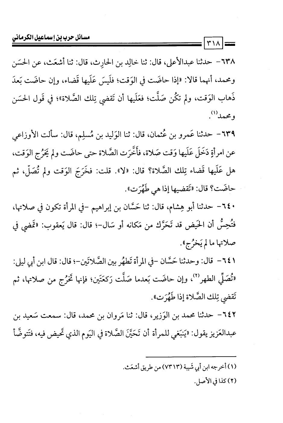 كتاب مسائل حرب الكرماني كتاب الطهارة والصلاة - ت السريع