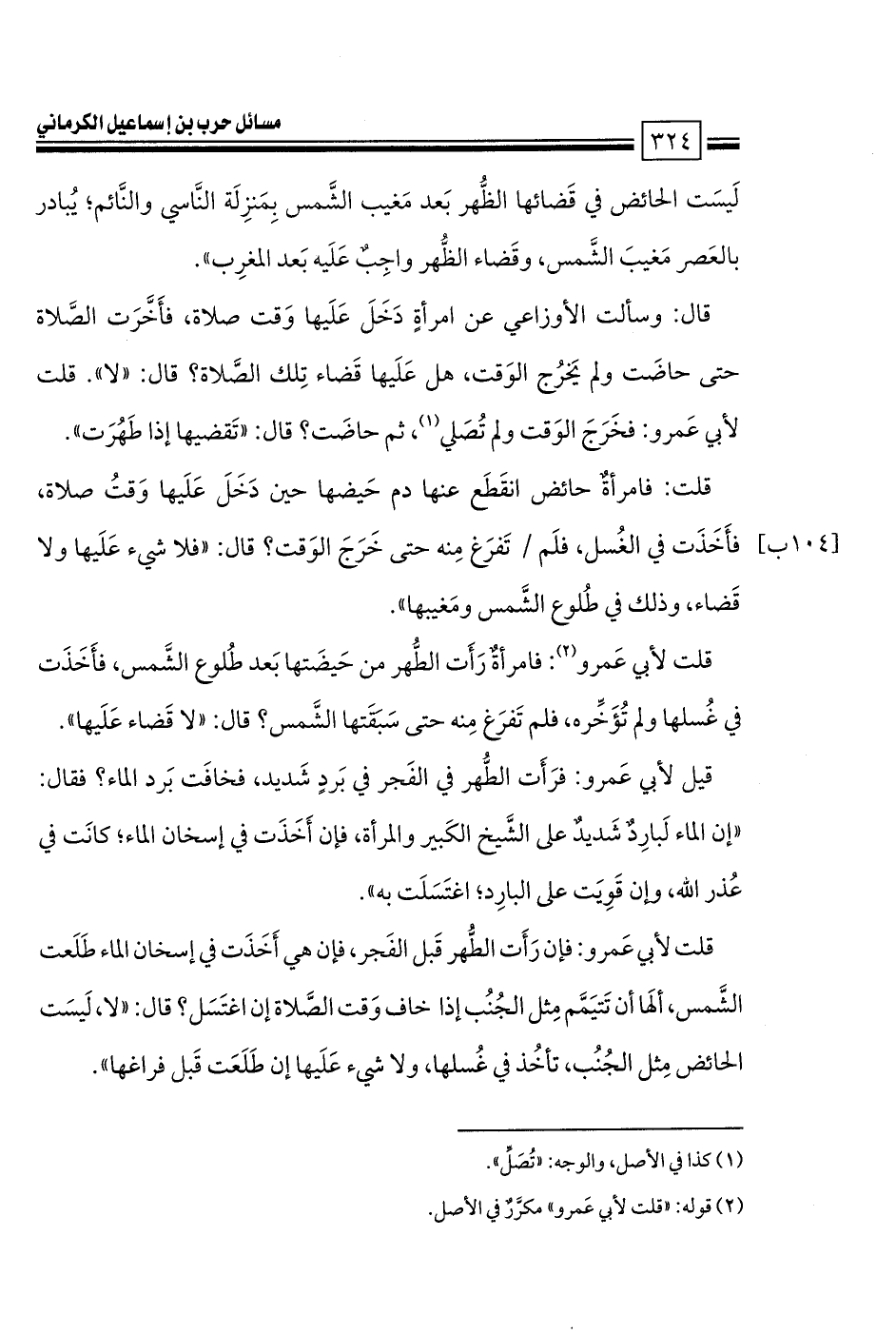 كتاب مسائل حرب الكرماني كتاب الطهارة والصلاة - ت السريع