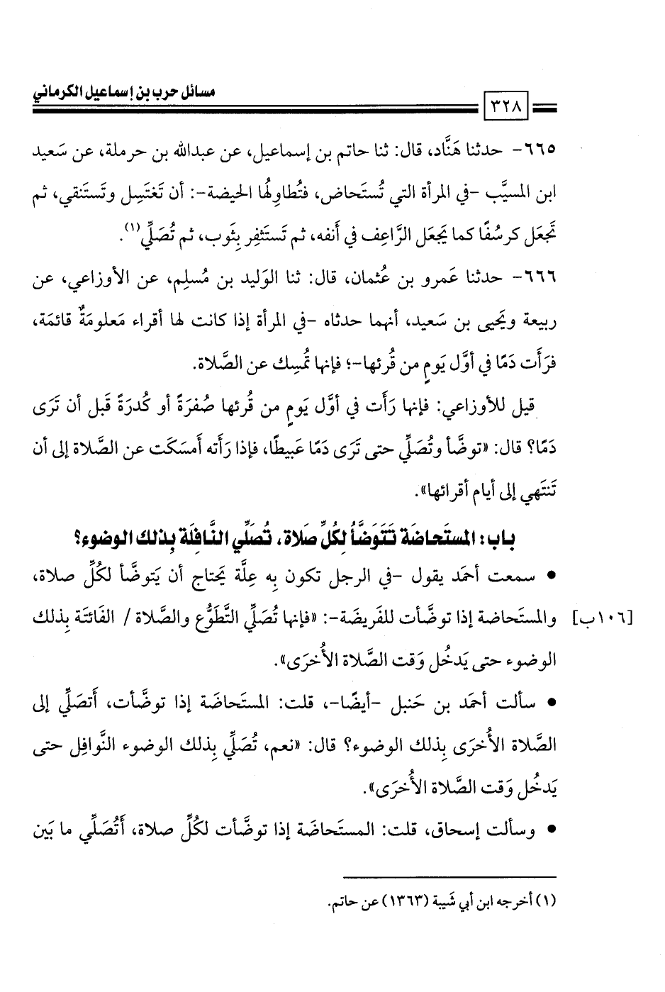 كتاب مسائل حرب الكرماني كتاب الطهارة والصلاة - ت السريع