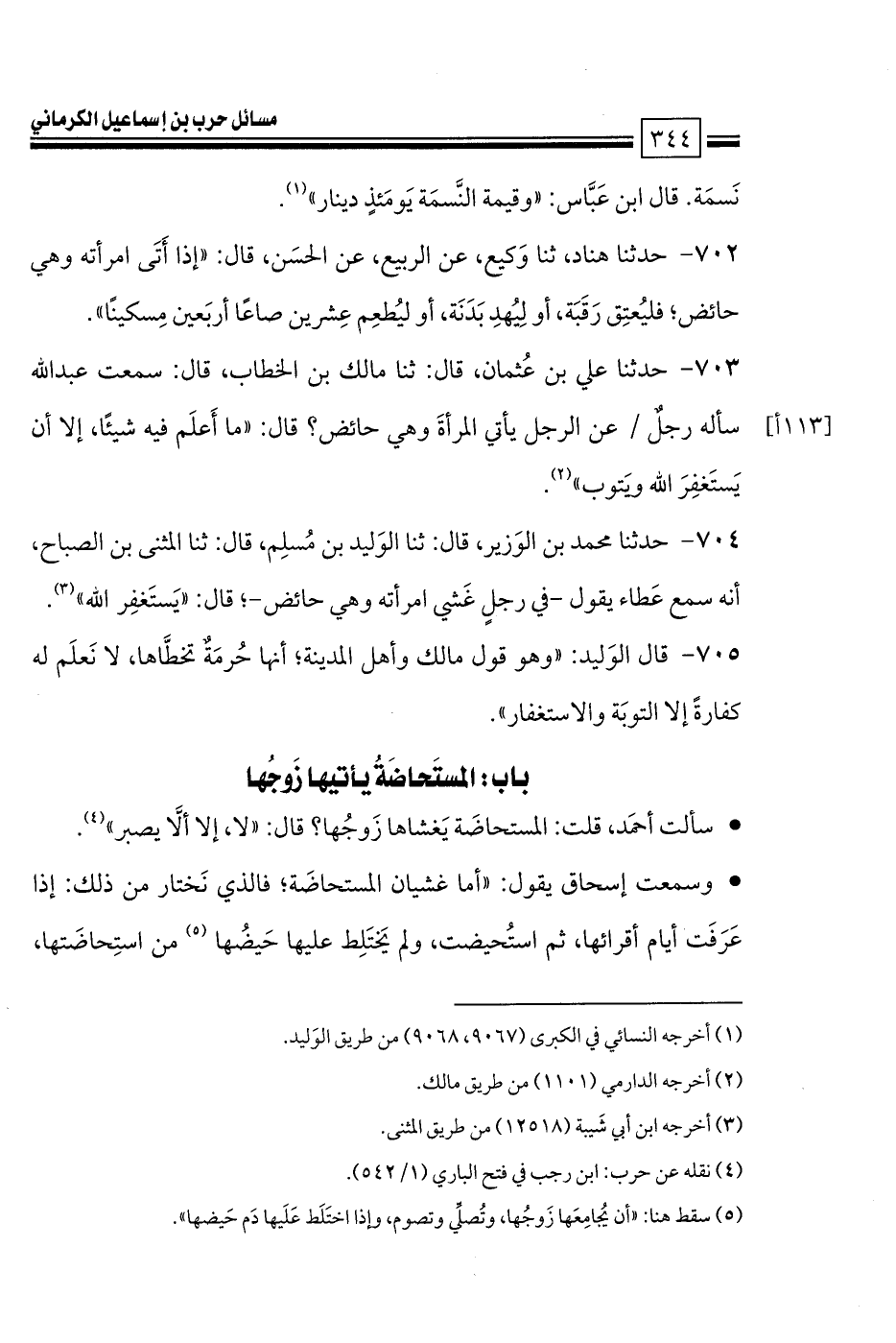كتاب مسائل حرب الكرماني كتاب الطهارة والصلاة - ت السريع
