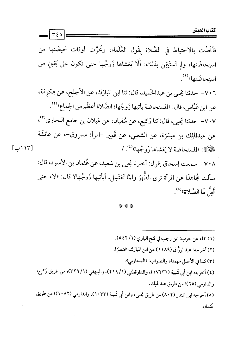 706 - حدثنا يَحيى بن عبد الحَميد، قال: ثنا ابن المبارَك، عن الأجلح، عن عِكرِمَة، عن ابن عَبَّاس، قال: «المستحاضة يأتيها زَوجُها؛ الصَّلاة أعظَم من الجِماع».