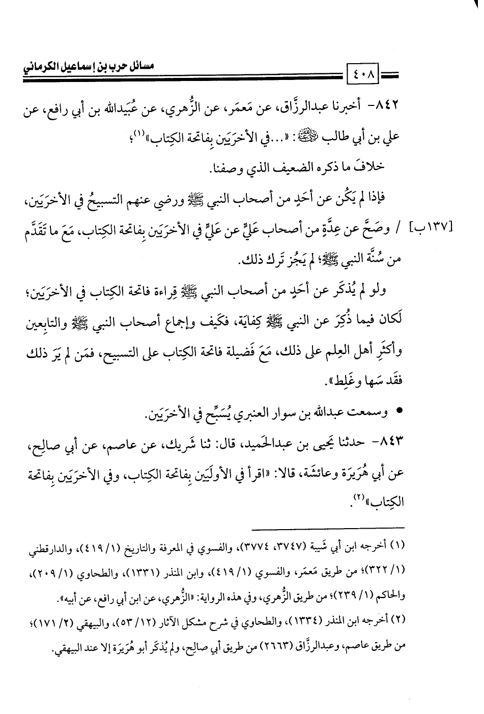 كتاب مسائل حرب الكرماني كتاب الطهارة والصلاة - ت السريع