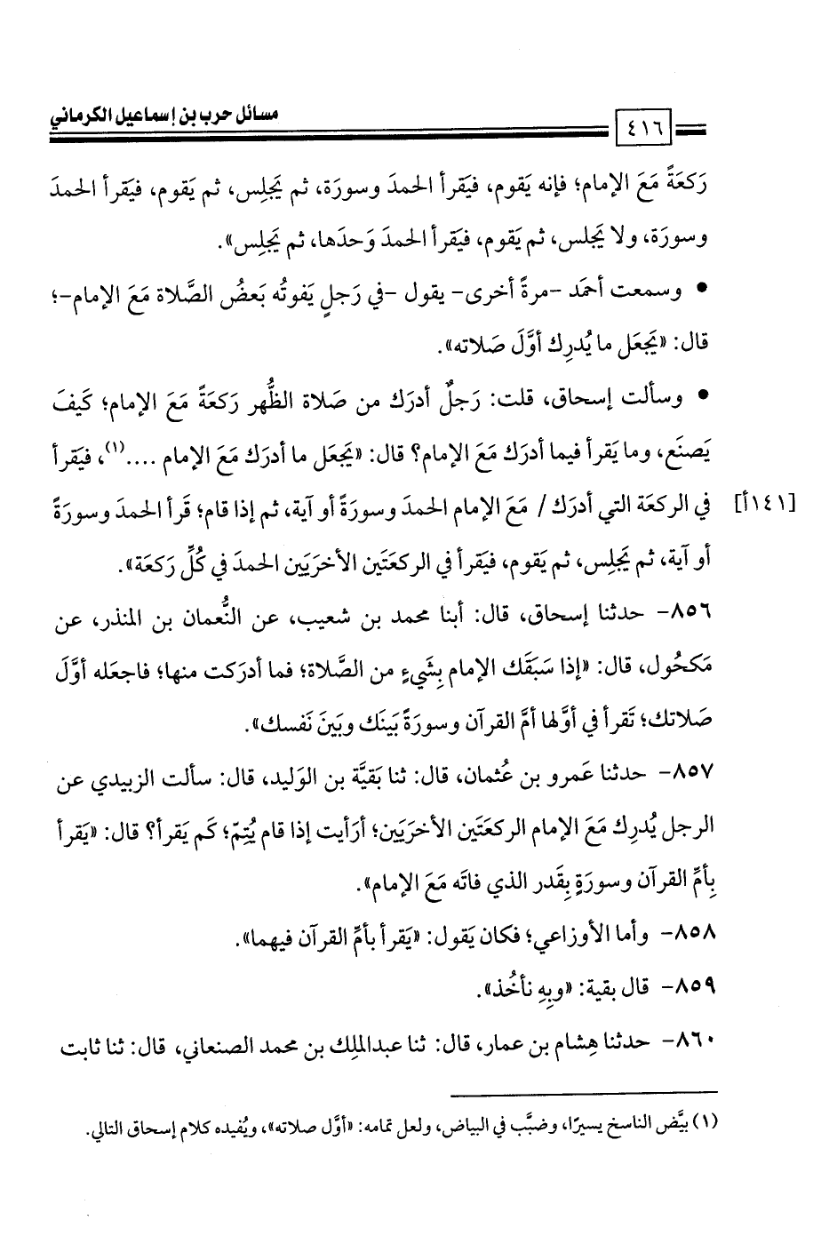 كتاب مسائل حرب الكرماني كتاب الطهارة والصلاة - ت السريع