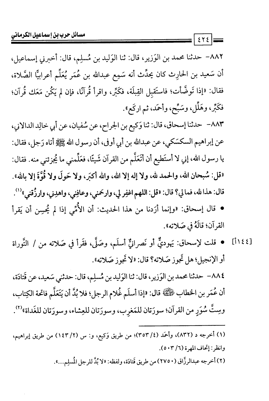 كتاب مسائل حرب الكرماني كتاب الطهارة والصلاة - ت السريع