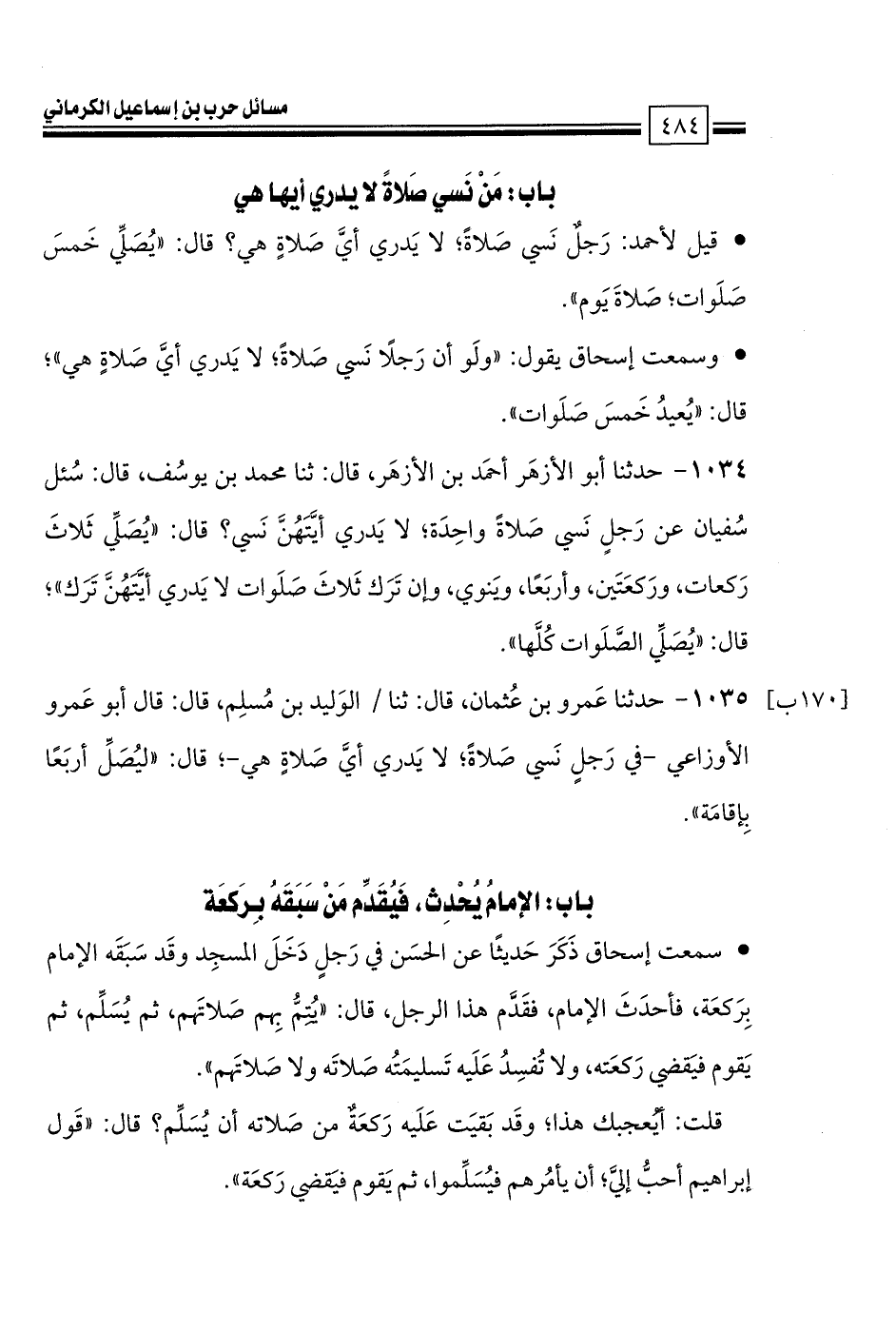 كتاب مسائل حرب الكرماني كتاب الطهارة والصلاة - ت السريع