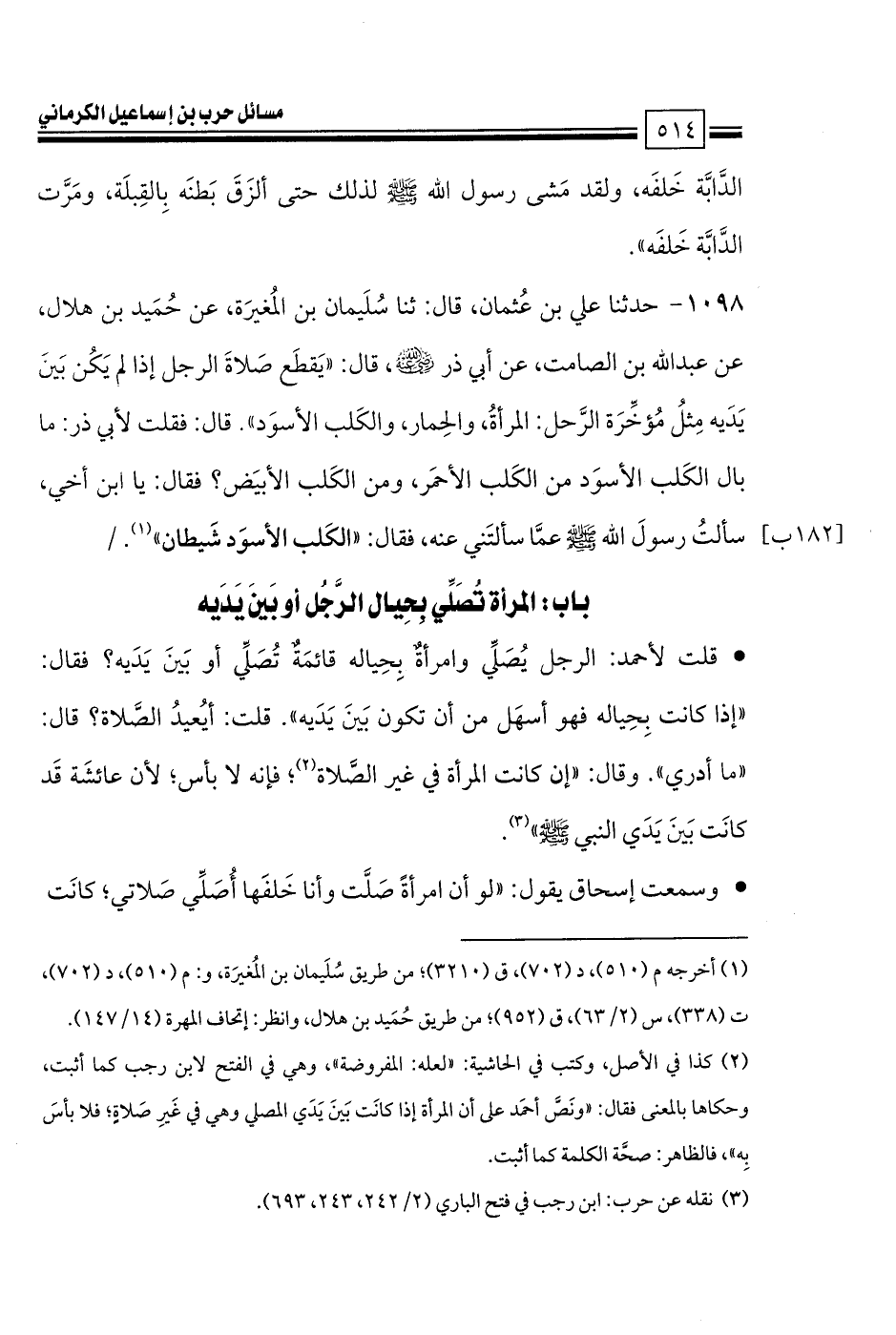 كتاب مسائل حرب الكرماني كتاب الطهارة والصلاة - ت السريع