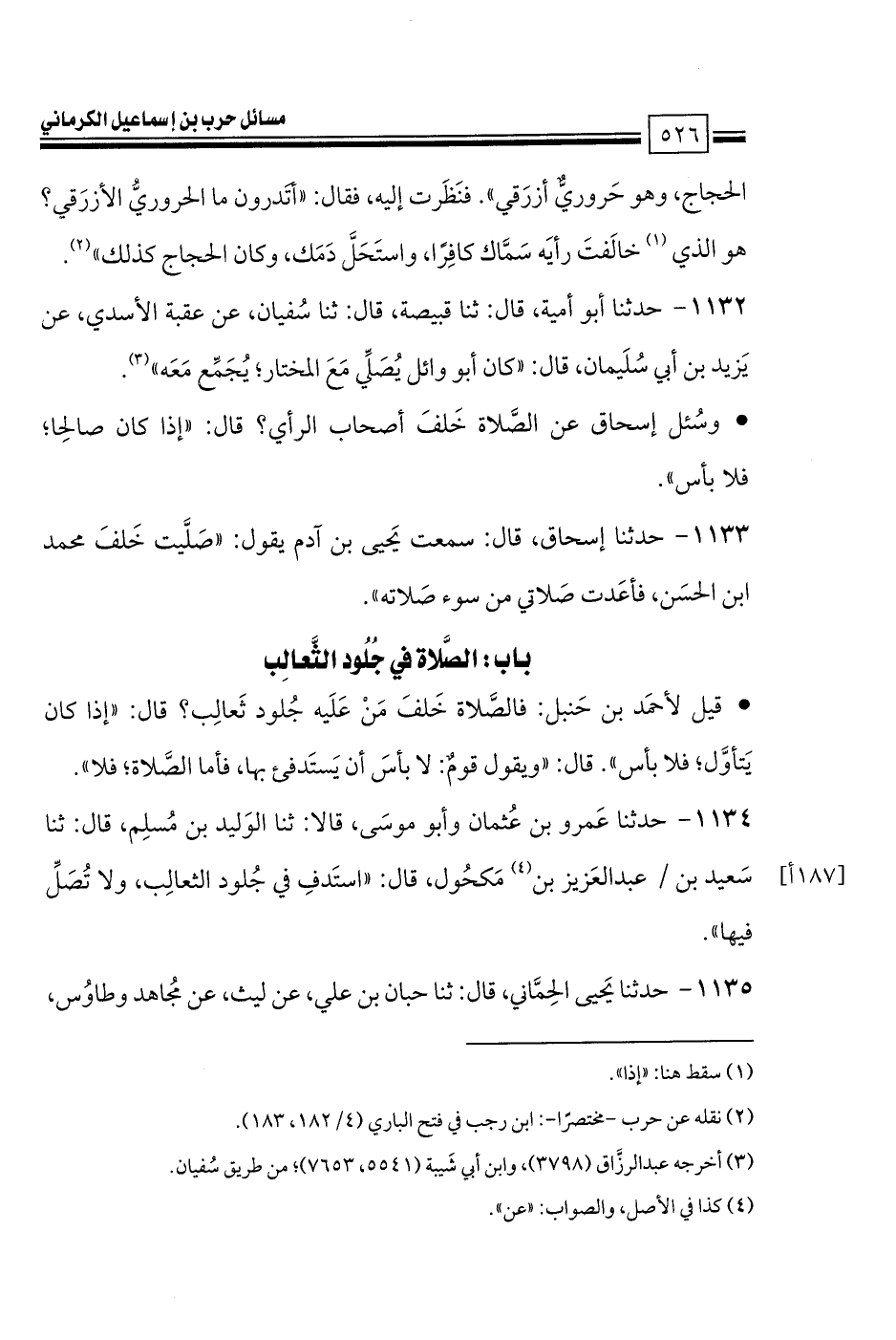 كتاب مسائل حرب الكرماني كتاب الطهارة والصلاة - ت السريع