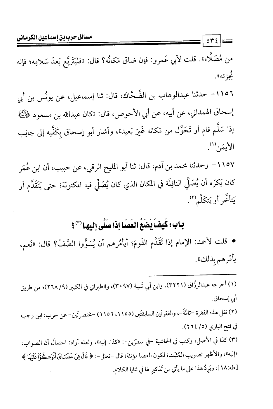كتاب مسائل حرب الكرماني كتاب الطهارة والصلاة - ت السريع