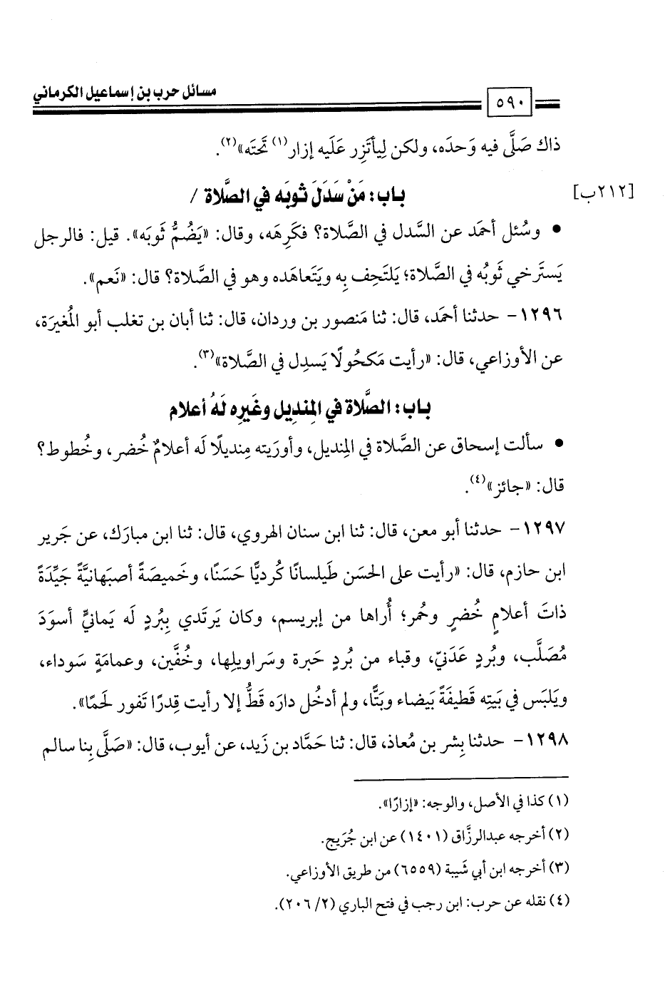 كتاب مسائل حرب الكرماني كتاب الطهارة والصلاة - ت السريع