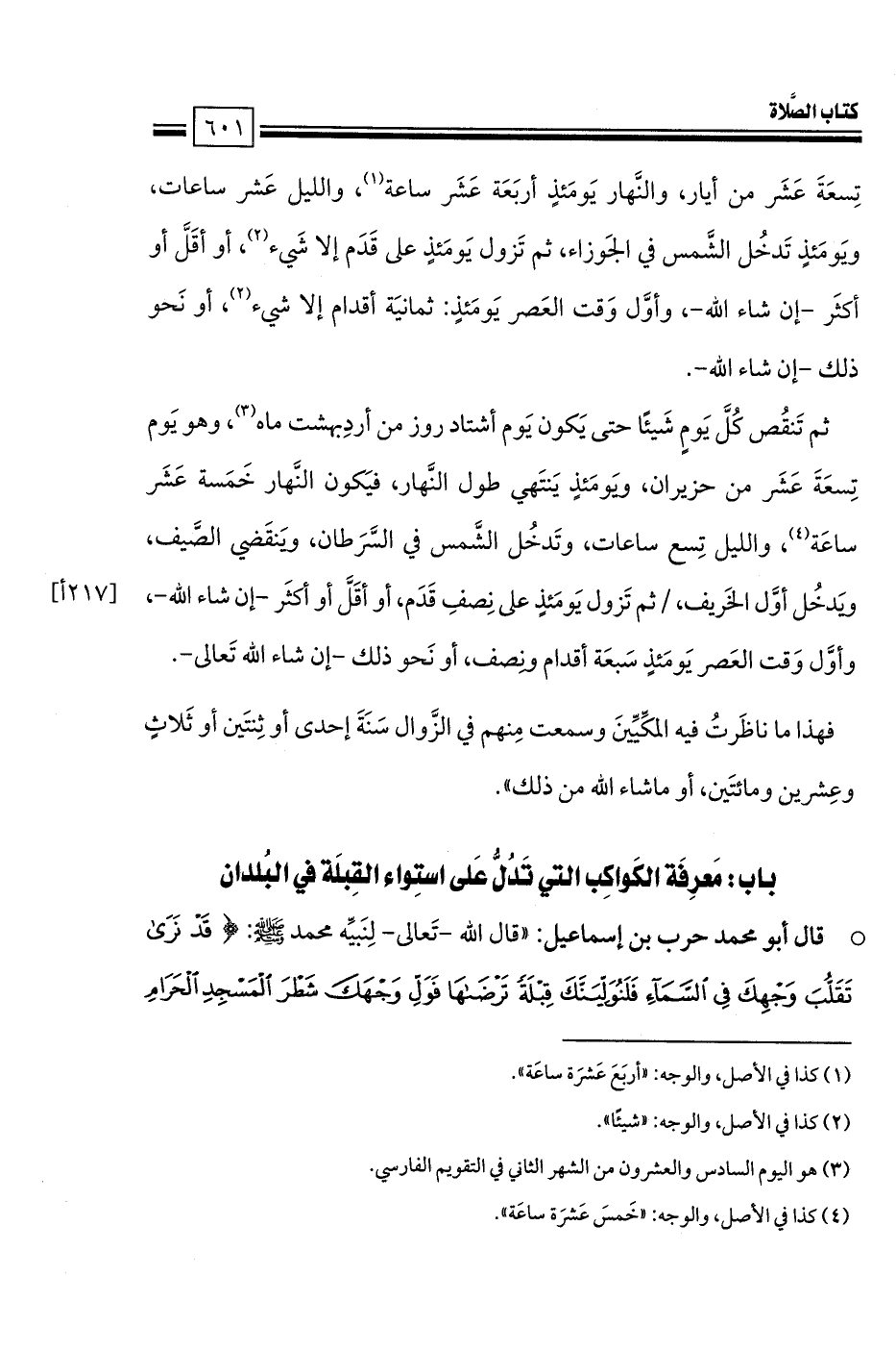 باب: مَعرِفَة الكَواكِب التي تَدُلُّ عَلى استِواء القِبلَة في البُلدان