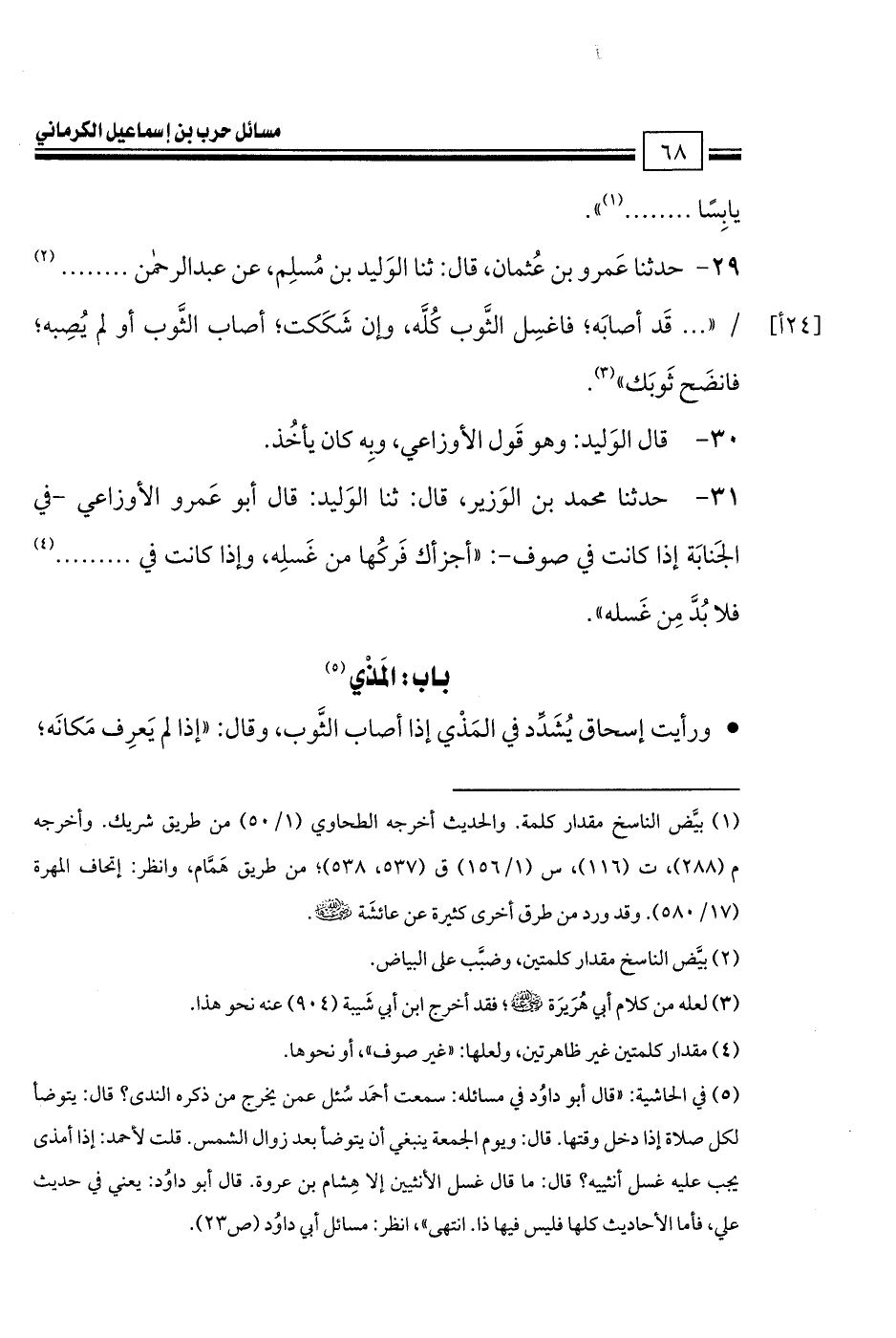 كتاب مسائل حرب الكرماني كتاب الطهارة والصلاة - ت السريع