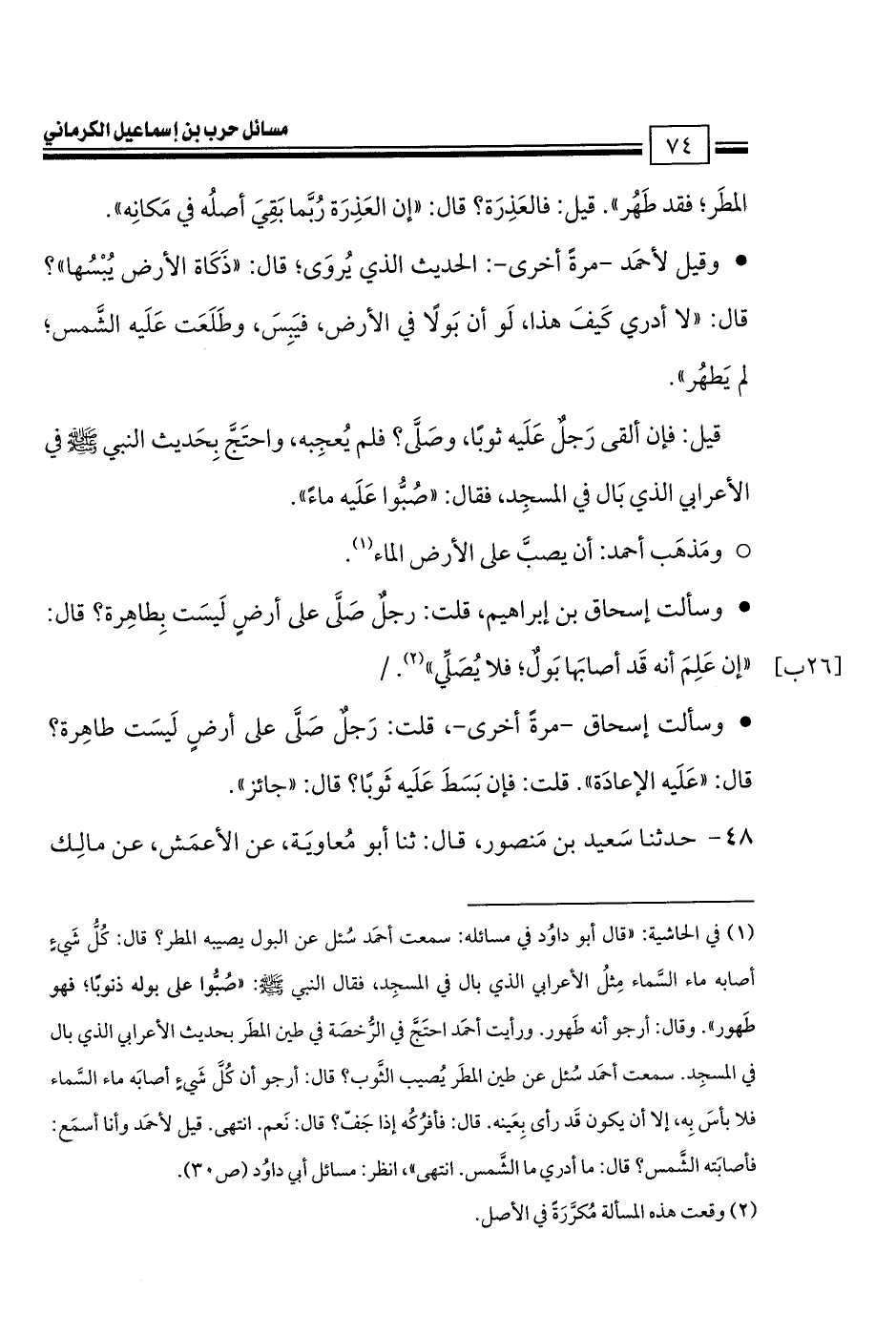 كتاب مسائل حرب الكرماني كتاب الطهارة والصلاة - ت السريع