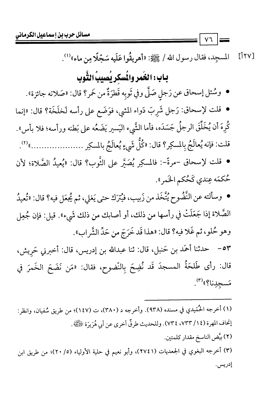 كتاب مسائل حرب الكرماني كتاب الطهارة والصلاة - ت السريع