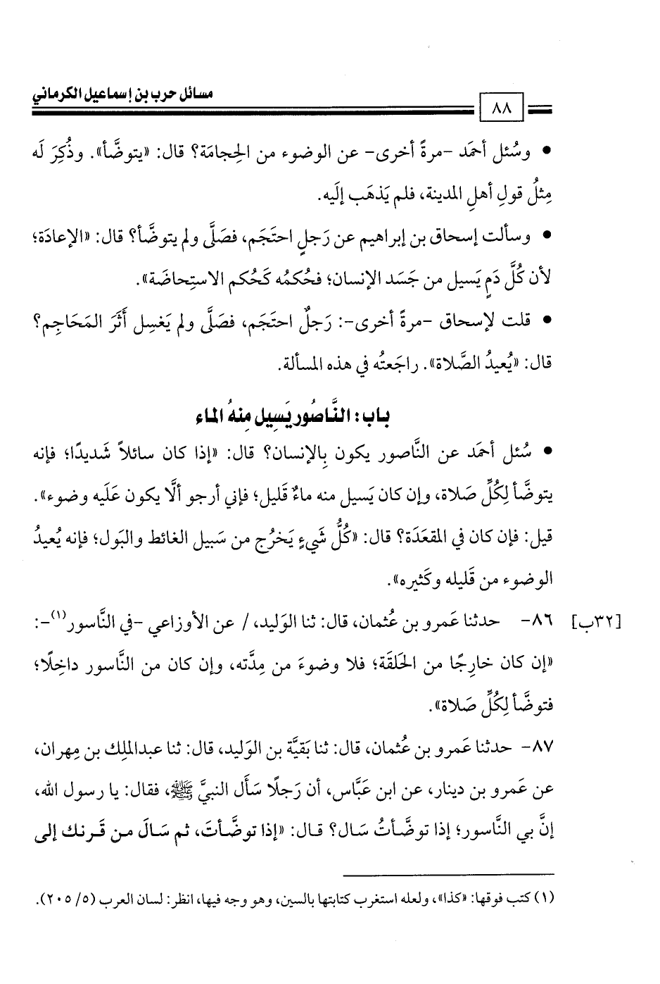 كتاب مسائل حرب الكرماني كتاب الطهارة والصلاة - ت السريع