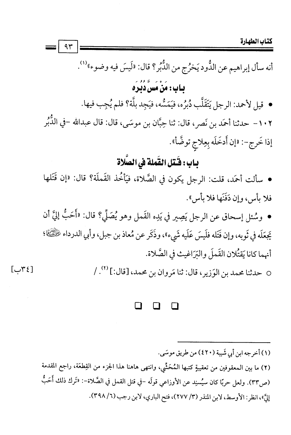 (1) ما بين المعقوفين من تعقيبهٍ كتبها المُحَشِّي، وانتهى هاهنا هذا الجزء من القطعة، وارجع المقدمة (ص 33). ولعل حربا كان سيسند عن الأوزاعي قوله -في قتل القمل في الصلاة-: "ترك ذلك أحب إلي"، انظر: الأوسط، لابن المنذر (3/ 277)، فتح الباري، لابن رجب (6/ 398).