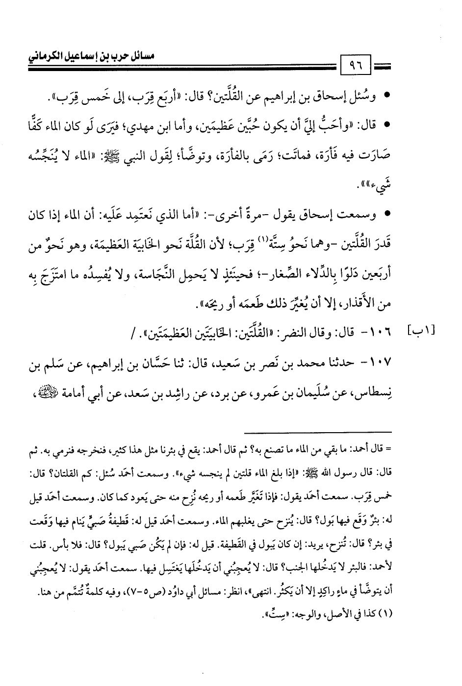 كتاب مسائل حرب الكرماني كتاب الطهارة والصلاة - ت السريع