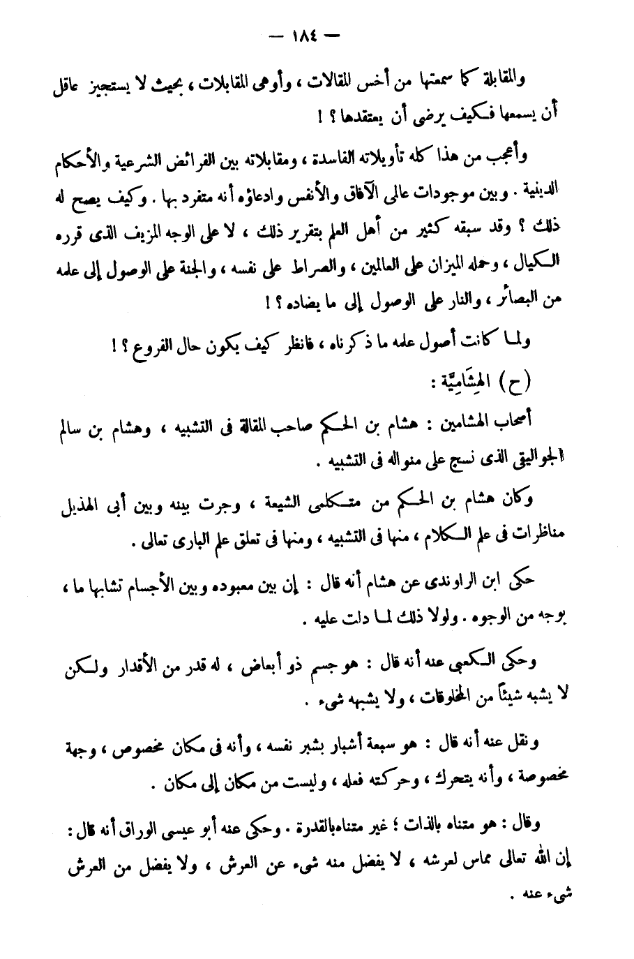 أصحاب الهاشمين: هشام بن الحكم صاحب المقالة في التشبيه، وهشام بن سالم الجواليقي الذي نسج على منواله في التشبيه.