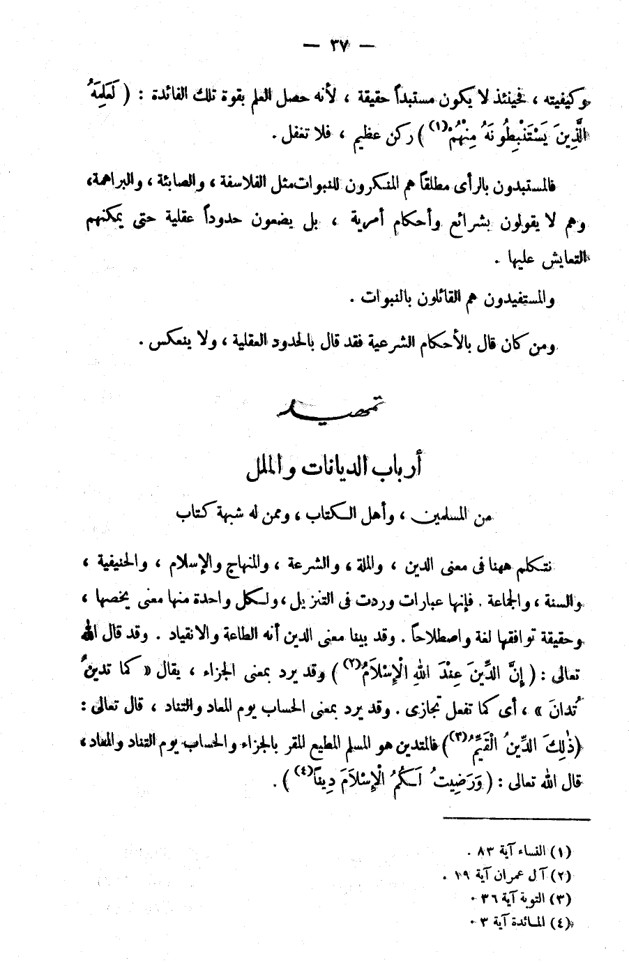أرباب الديانات والملل من المسلمين، وأهل الكتاب، وممن له شبهة كتاب:
