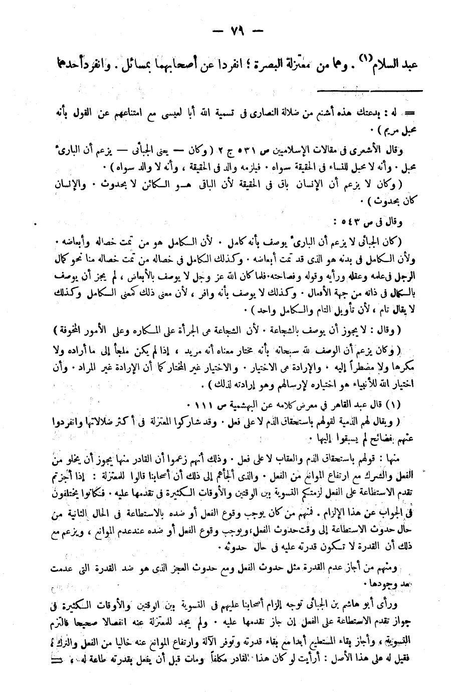 عبد السلام1. وهما من معتزلة البصرة؛ انفردا عن أصحابهما بمسائل. وانفرد أحدهما