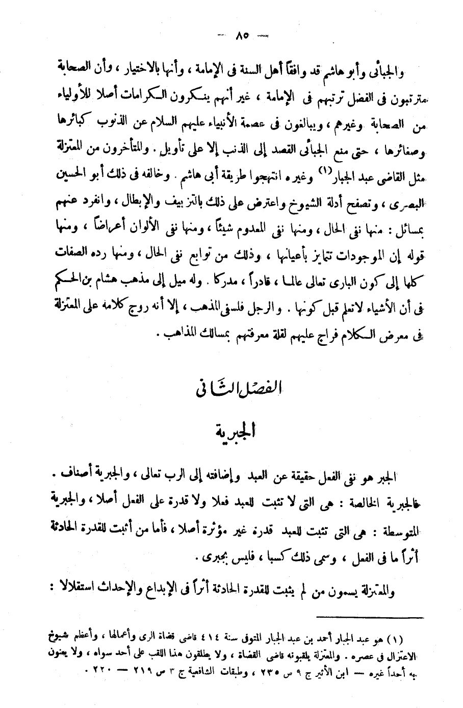 1 هو عبد الجبار أحمد بن عبد الجبار المتوفى سنة 414 قاضي قضاة الري وأعمالها، وأعظم شيوخ الاعتزال في عصره. والمعتزلة يلقبونه قاضي القضاة، ولا يطلقون هذا اللقب على أحد سواه، ولا يعنون به أحدا غيره -ابن الأثير ج9 ص235، وطبقات الشافعية ج3 ص219-220.