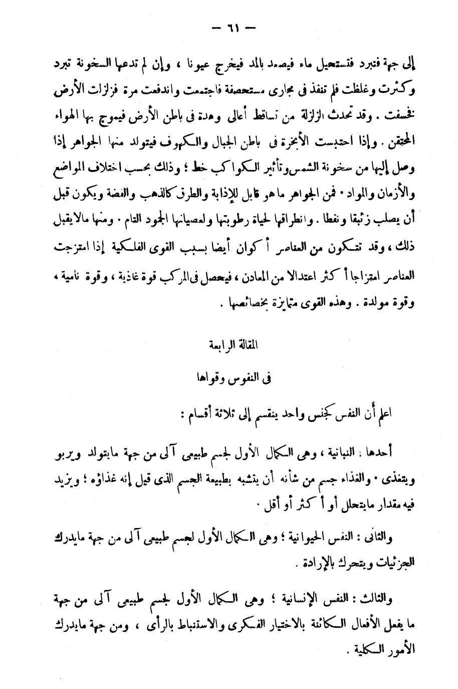 المقالة الرابعة: في النفوس وقواها