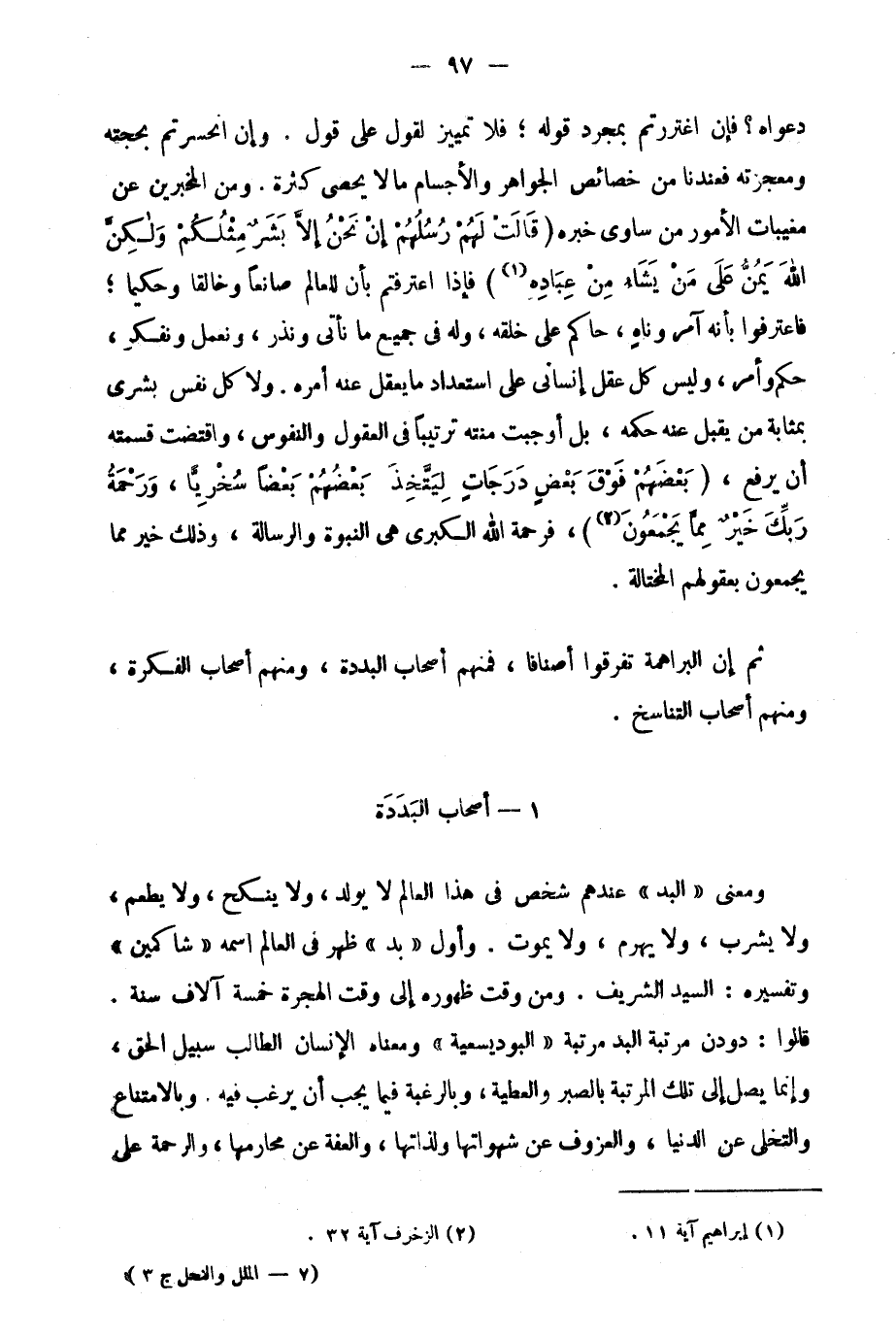 ثم إن البراهمة تفرقوا أصنافا, فمنهم أصحاب البددة، ومنهم أصحاب الفكرة، ومنهم أصحاب التناسخ.