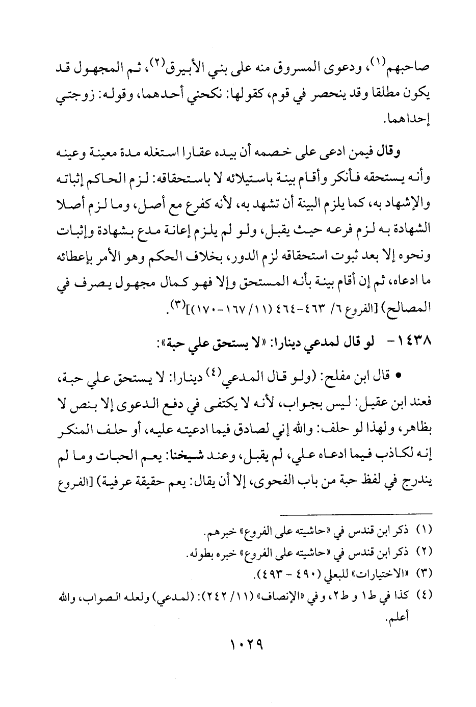 1438 - لو قال لمدعي دينارا: "لا يستحق علي حبة":