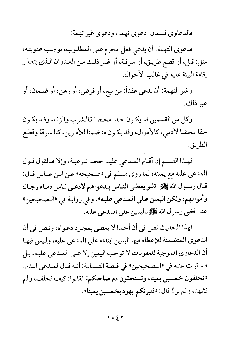 فهذا القسم إن أقام المدعي عليه حجة شرعية، وإلا فالقول قول المدعى عليه مع يمينه، لما روى مسلم في "صحيحه" عن ابن عباس قال: قال رسول الله - صلى الله عليه وسلم -: "لو يعطى الناس بدعواهم لادعى ناس دماء رجال وأموالهم، ولكن اليمين على المدعى عليه". وفي رواية في "الصحيحين" عنه: قضى رسول الله - صلى الله عليه وسلم - باليمين على المدعى عليه.