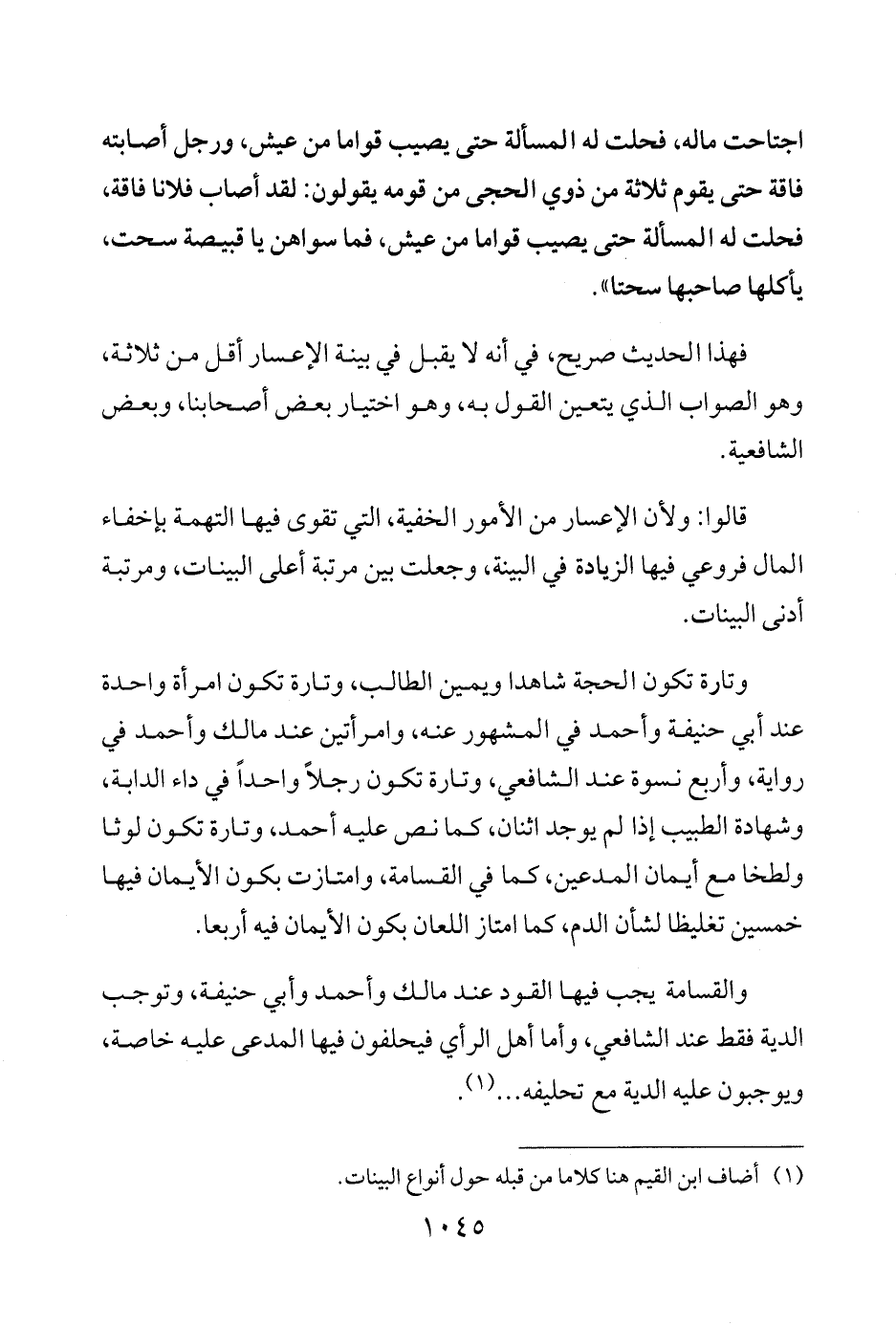 (¬1) أضاف ابن القيم هنا كلاما من قبله حول أنواع البينات.