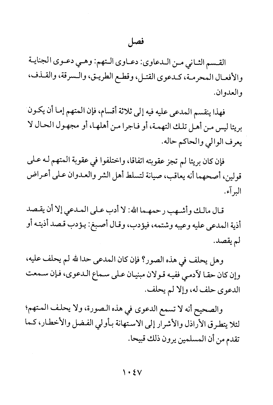 القسم الثاني من الدعاوى: دعاوى التهم: وهي دعوى الجناية والأفعال المحرمة، كدعوى القتل، وقطع الطريق، والسرقة، والقذف، والعدوان.