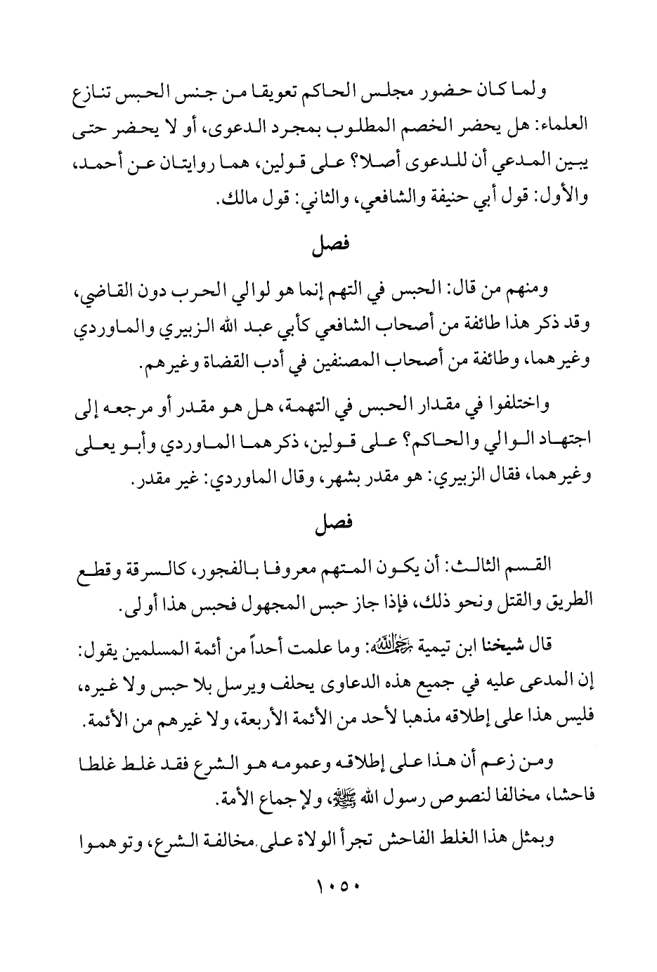 قال شيخنا ابن تيمية رحمه الله: وما علمت أحدًا من أئمة المسلمين يقول: إن المدعى عليه في جميع هذه الدعاوى يحلف ويرسل بلا حبس ولا غيره، فليس هذا على إطلاقه مذهبا لأحد من الأئمة الأربعة، ولا غيرهم من الأئمة.