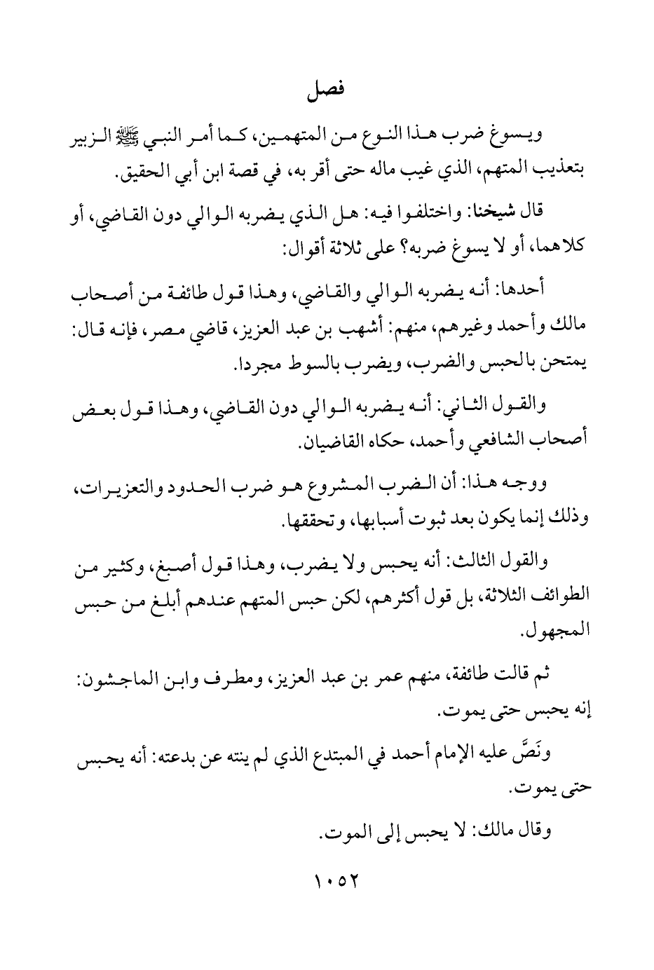 ويسوغ ضرب هذا النوع من المتهمين، كما أمر النبي - صلى الله عليه وسلم - الزبير بتعذيب المتهم، الذي غيب ماله حتى أقر به، في قصة ابن أبي الحقيق.