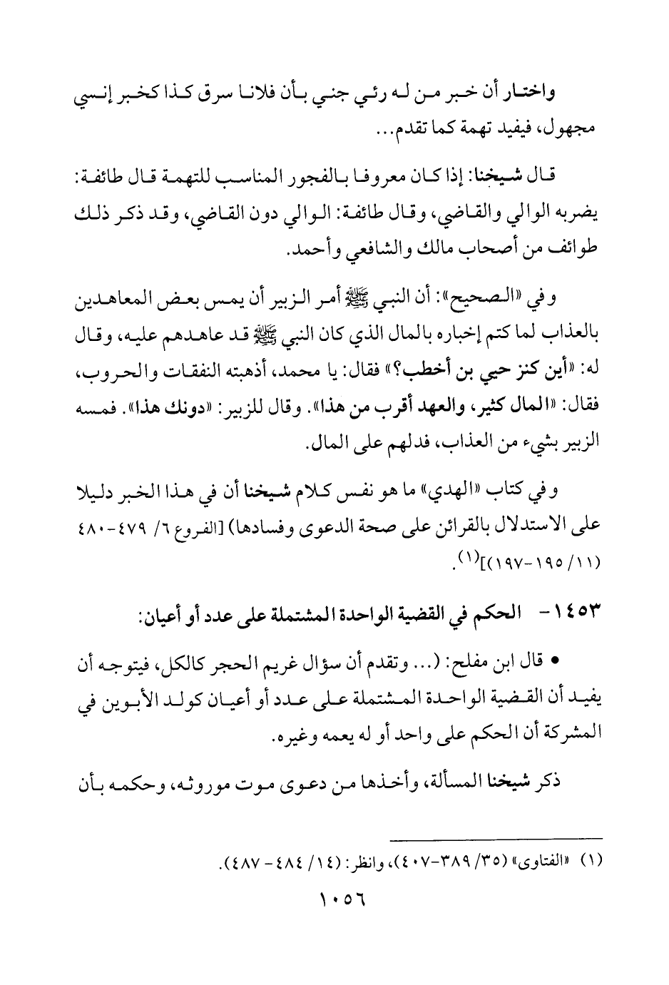 1453 - الحكم في القضية الواحدة المشتملة على عدد أو أعيان: