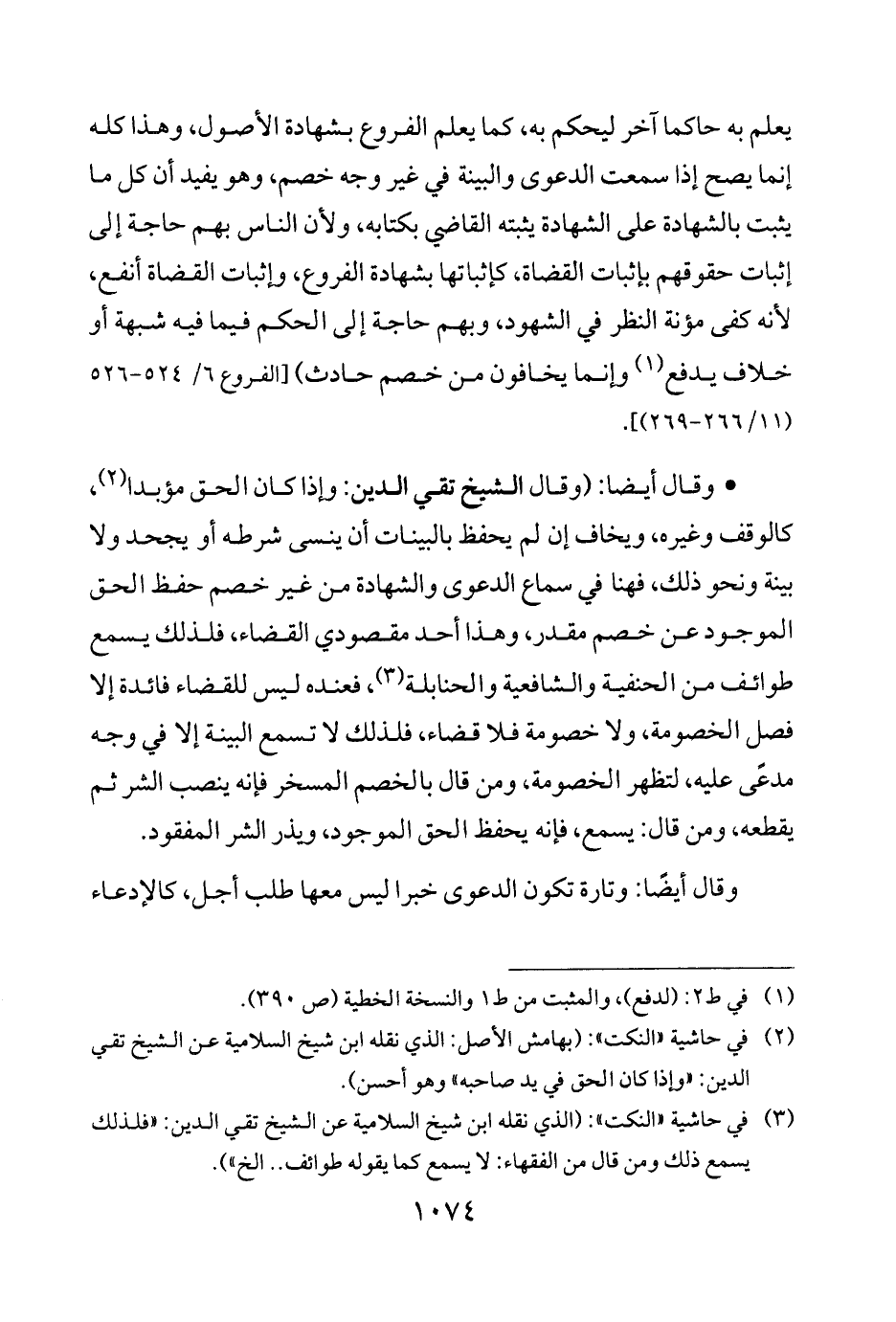 (¬3) في حاشية "النكت": (الذي نقله ابن شيخ السلامية عن الشيخ تقي الدين: "فلذلك يسمع ذلك ومن قال من الفقهاء: لا يسمع كما يقوله طوائف .. الخ").