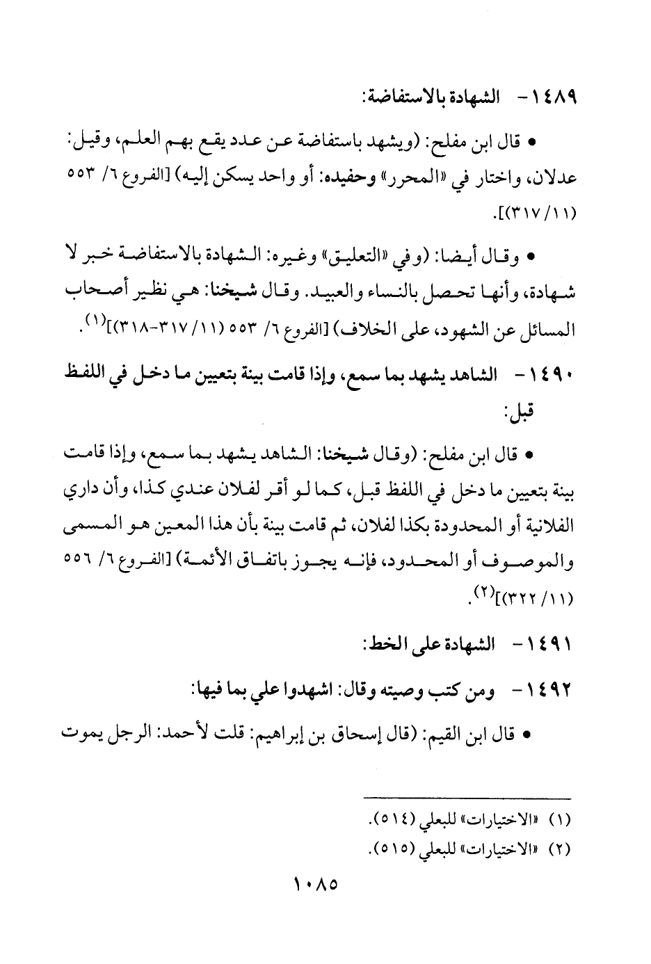 • قال ابن مفلح: (ويشهد باستفاضة عن عدد يقع بهم العلم، وقيل: عدلان، واختار في "المحرر" وحفيده: أو واحد يسكن إليه) [الفروع 6/ 553 (11/ 317)].
