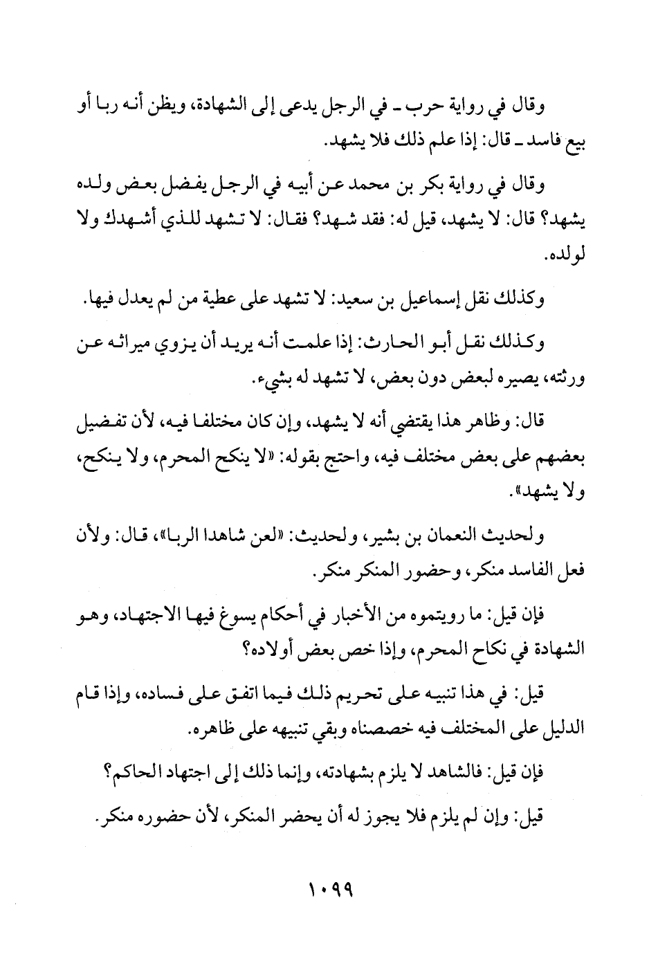قال: وظاهر هذا يقتضي أنه لا يشهد، وإن كان مختلفا فيه، لأن تفضيل بعضهم على بعض مختلف فيه، واحتج بقوله: "لا ينكح المحرم، ولا ينكح، ولا يشهد".