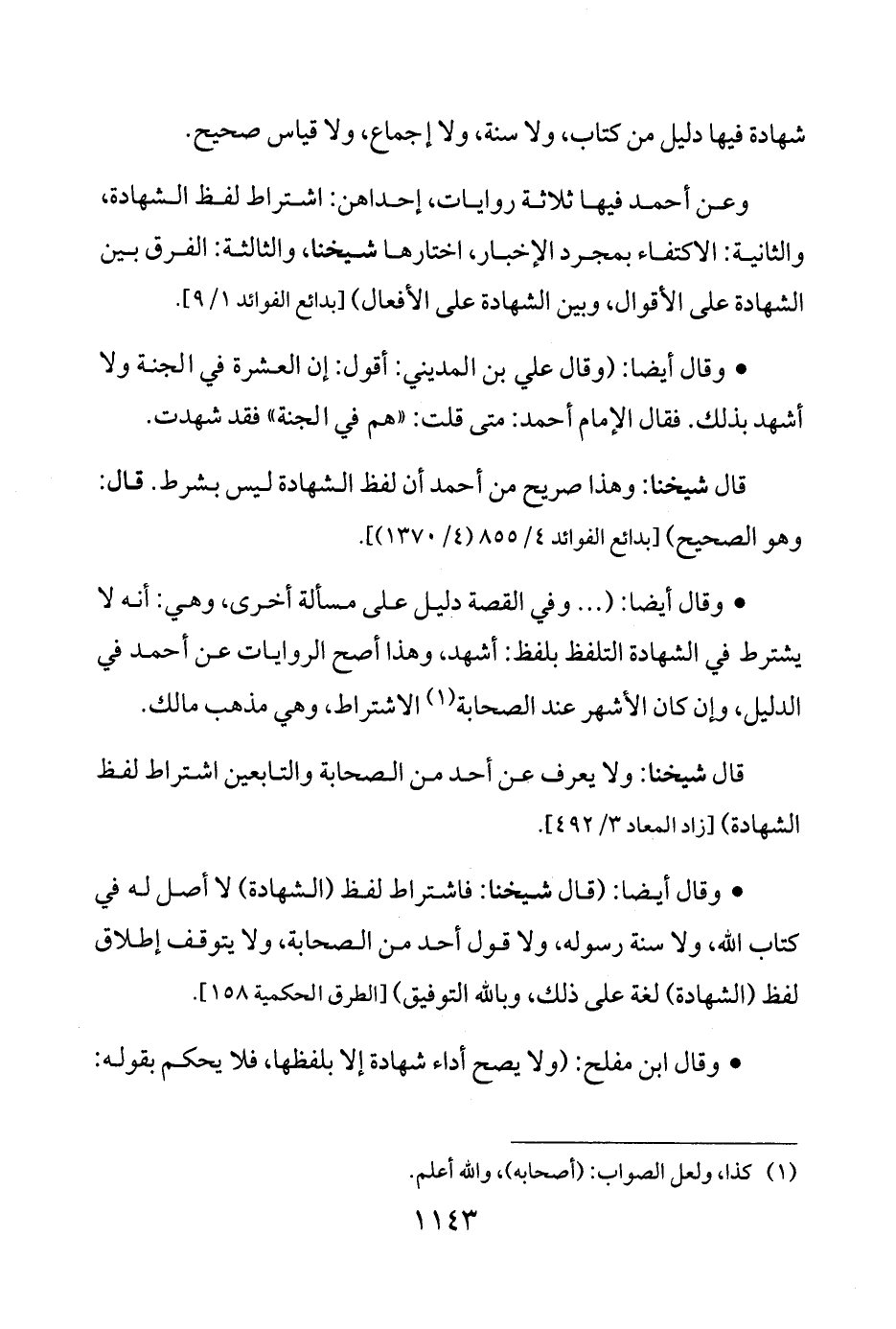 قال شيخنا: وهذا صريح من أحمد أن لفظ الشهادة ليس بشرط. قال: وهو الصحيح) [بدائع الفوائد 4/ 855 (4/ 1370).