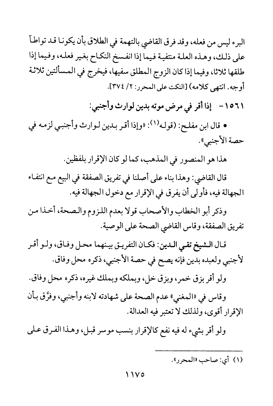 1561 - إذا أقر في مرض موته بدين لوارث وأجنبي:
