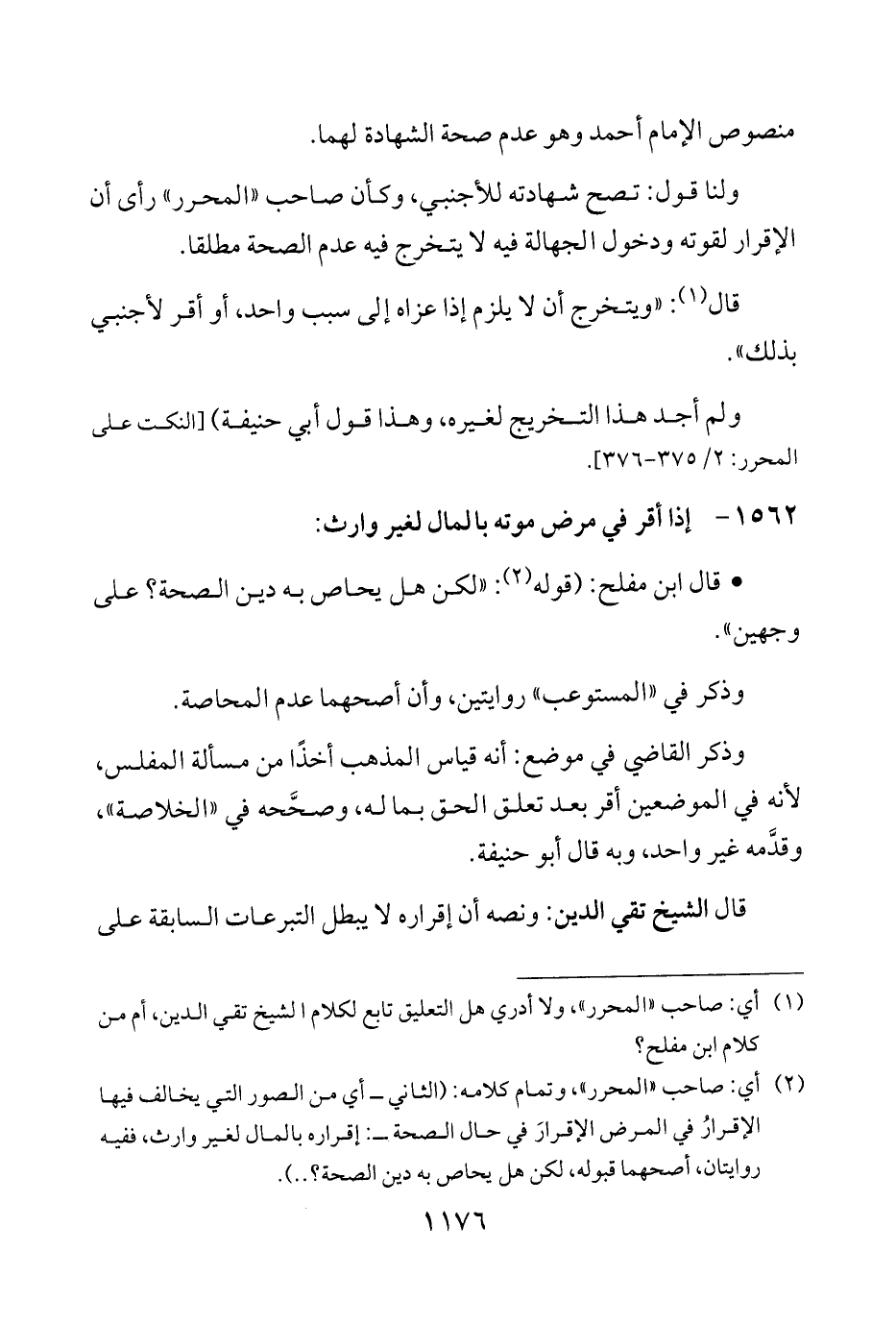 (¬1) أي: صاحب "المحرر"، ولا أدري هل التعليق تابع لكلام الشيخ تقي الدين، أم من كلام ابن مفلح؟