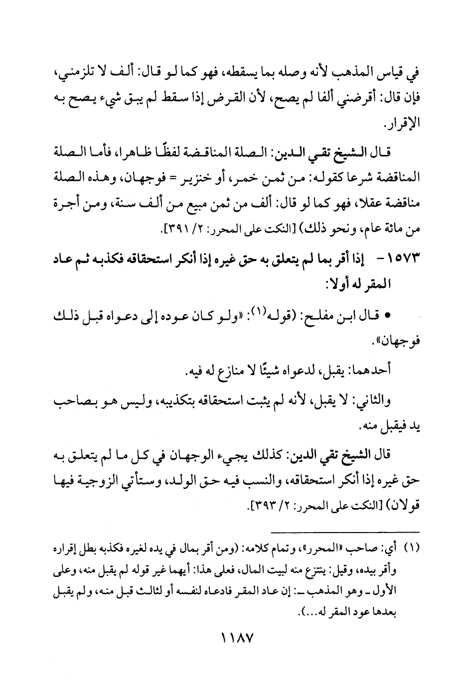1573 - إذا أقر بما لم يتعلق به حق غيره إذا أنكر استحقاقه فكذبه ثم عاد المقر له أولًا: