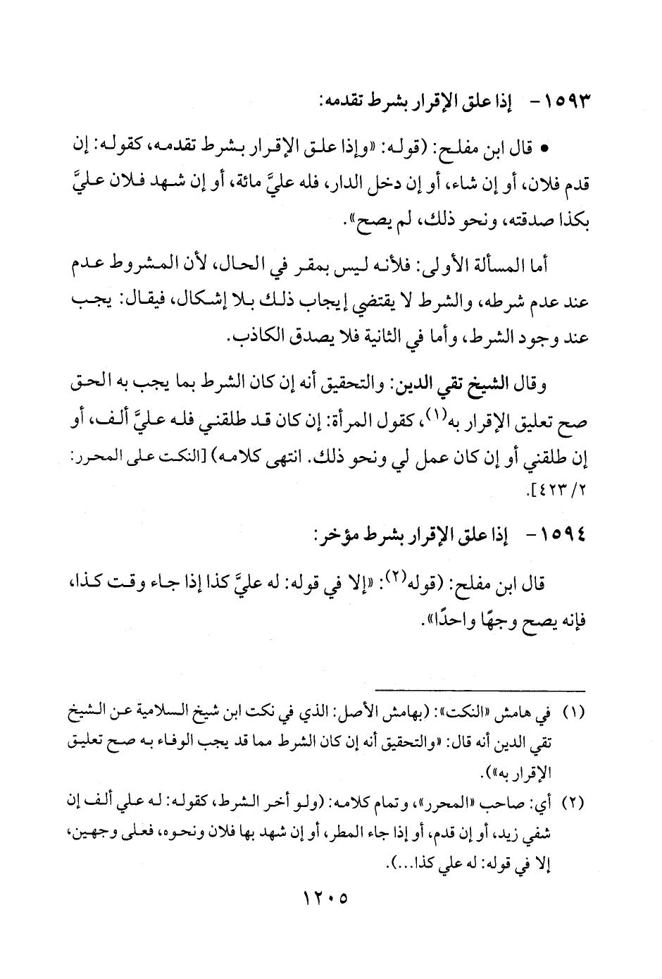 1593 - إذا علق الإقرار بشرط تقدمه: