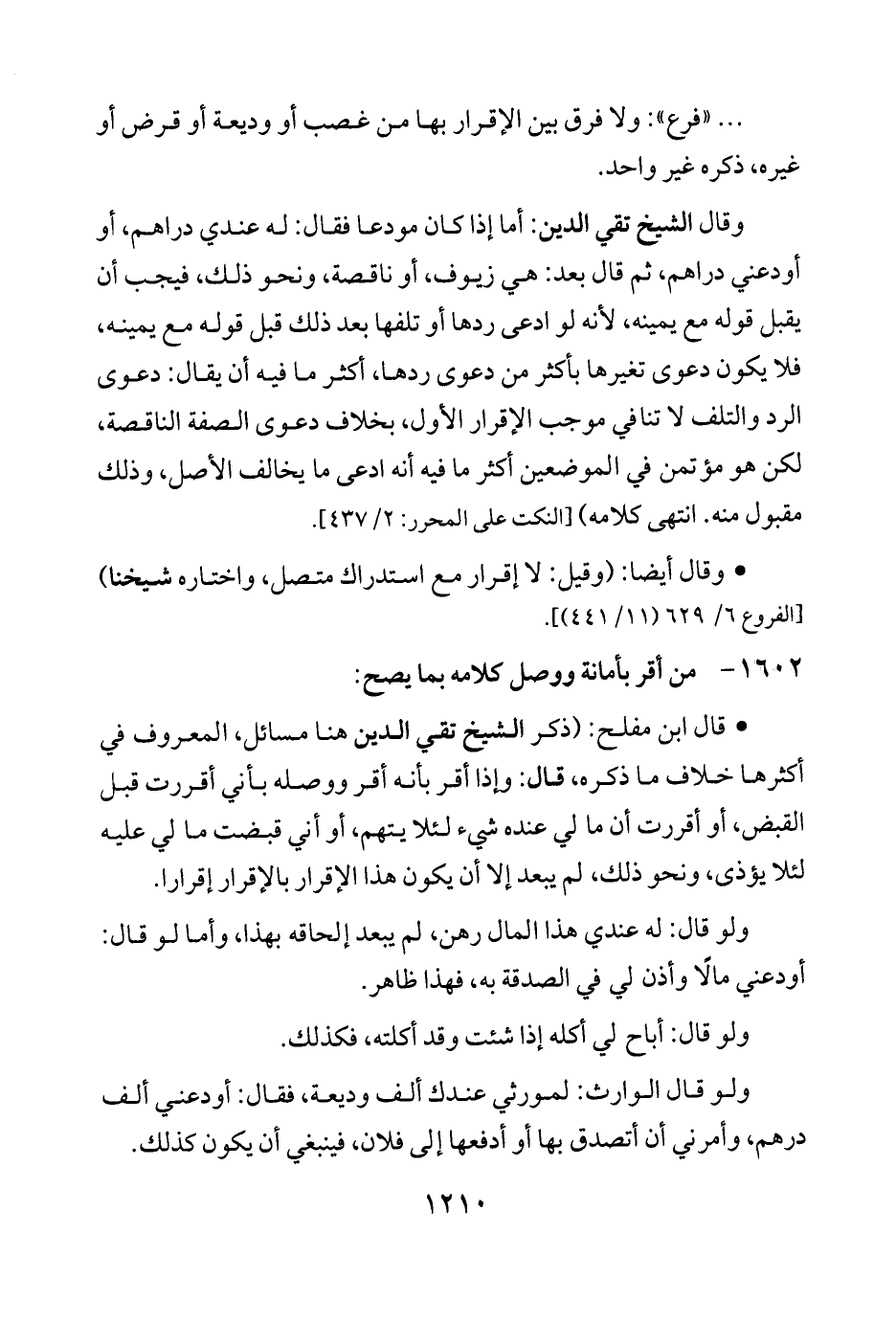 1602 - من أقر بأمانة ووصل كلامه بما يصح: