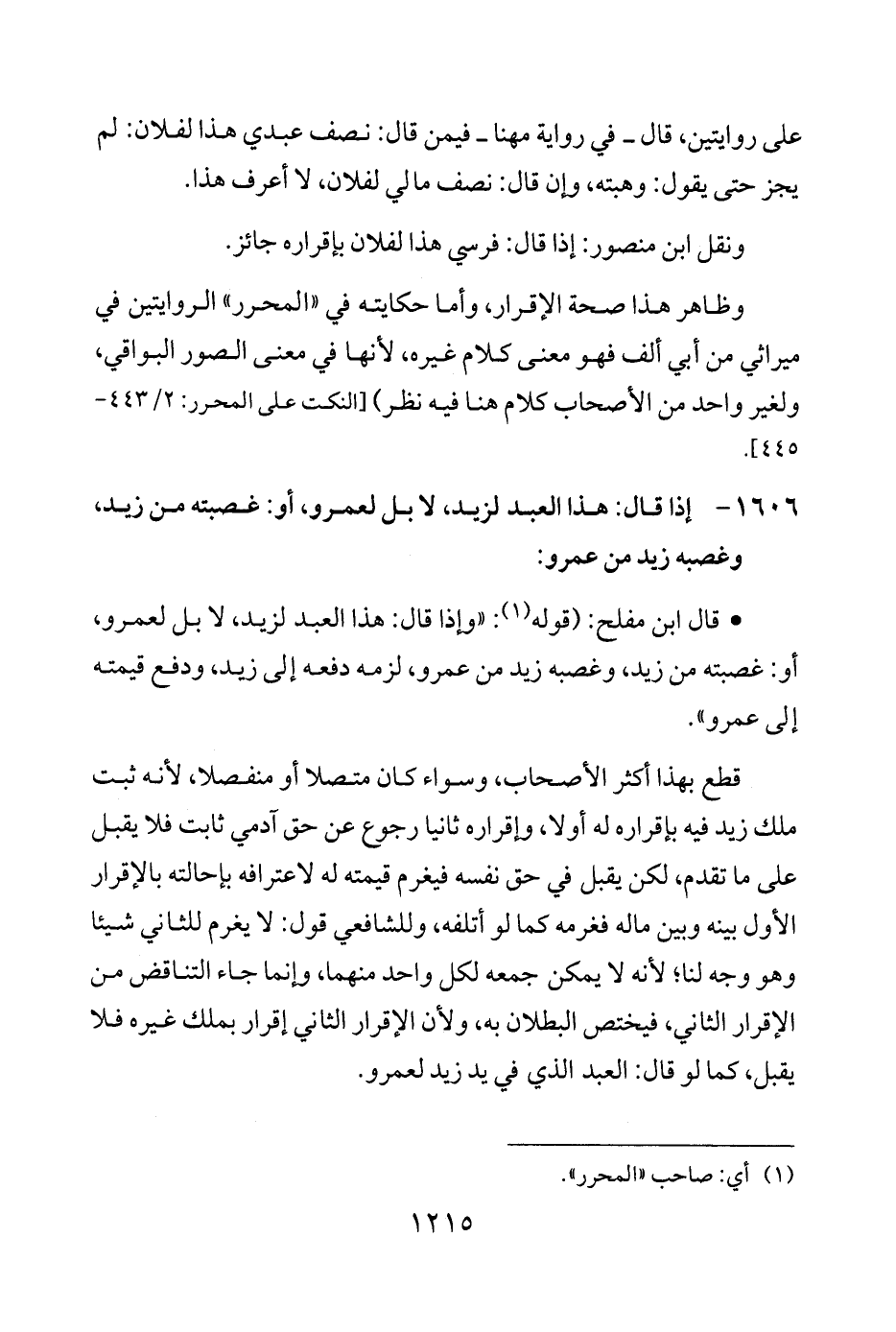 1606 - إذا قال: هذا العبد لزيد، لا بل لعمرو، أو: غصبته من زيد، وغصبه زيد من عمرو: