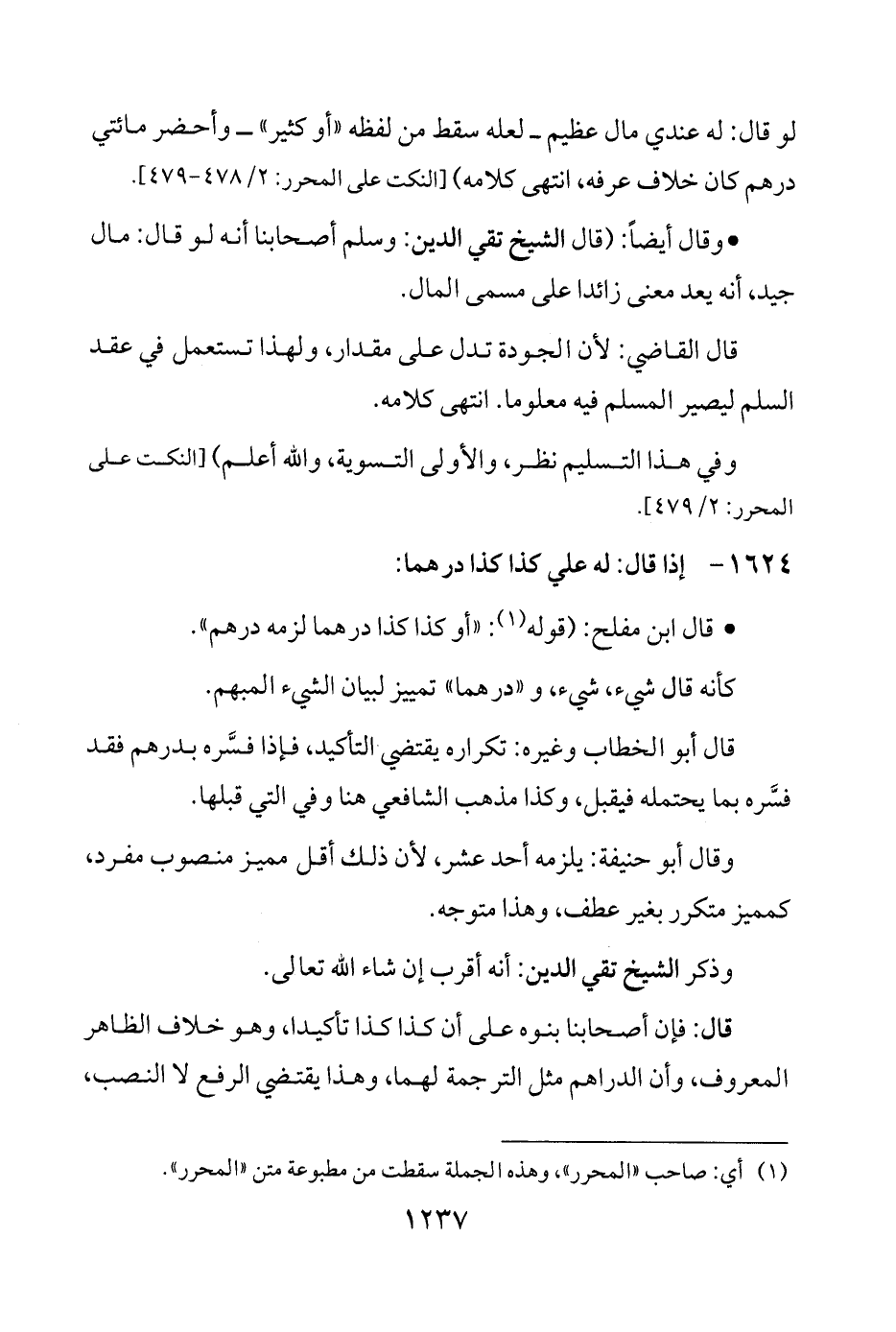 (¬1) أي: صاحب "المحرر"، وهذه الجملة سقطت من مطبوعة متن "المحرر".