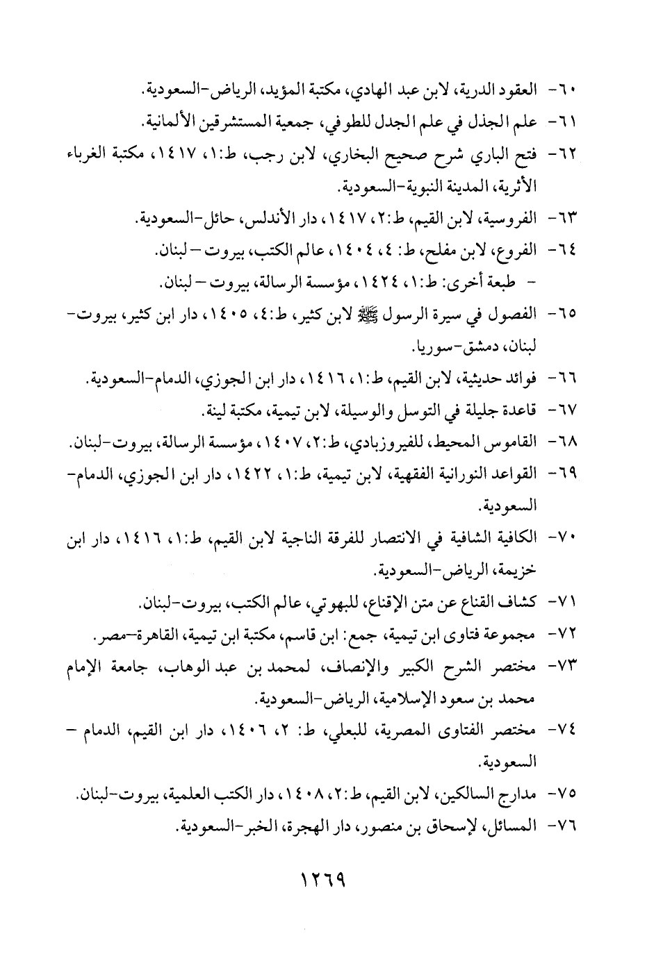 60 - العقود الدرية، لابن عبدِ الهادي، مكتبة المؤيد، الرياض - السعودية.