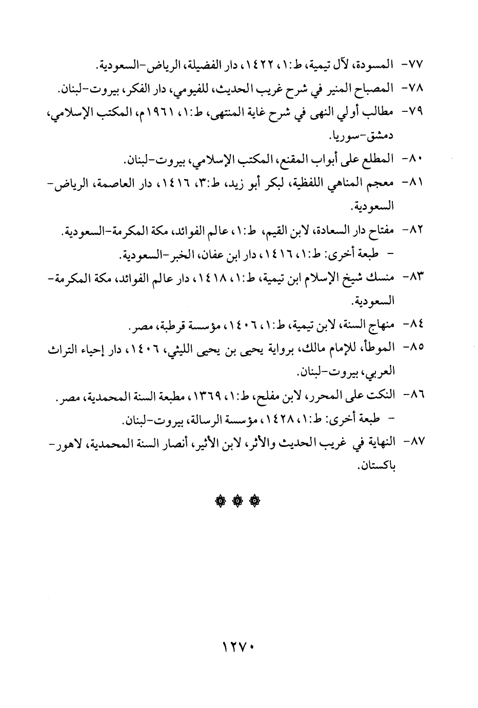 86 - النكت على المحرر، لابن مفلح، ط: 1، 1369، مطبعة السنة المحمدية، مصر.